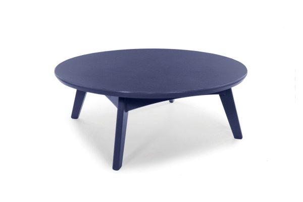 This round outdoor cocktail table is part of Loll Designs' modern Satellite Collection. Made from heavy, 1-inch-thick recycled plastic, it is available in several environmentally conscious colors.