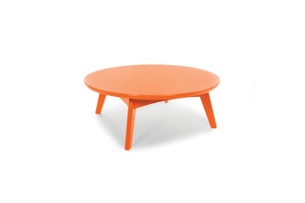 This round outdoor cocktail table is part of Loll Designs' modern Satellite Collection. Made from heavy, 1-inch-thick recycled plastic, it is available in several environmentally conscious colors.
