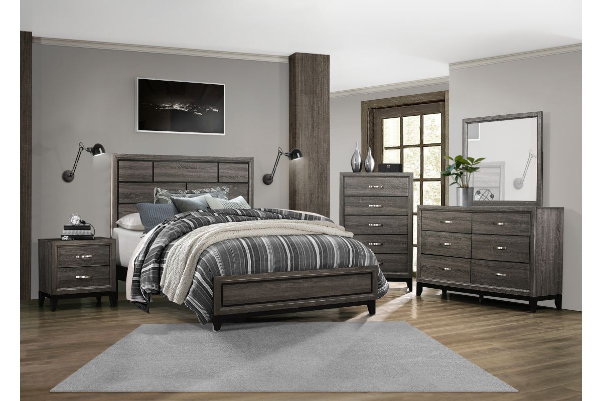 The modern styling of the Davi Collection is achieved by blending the natural look of wood grain and the clean lines of contemporary design to create a unique bedroom group that will fit right in with your home's aesthetic. The defining lines of the distinct framing of the Queen size bed effectively accent the printed wood grain on melamine veneer. Coordinating case pieces and bed sizes are also available - dresser, mirror, nightstand, chest, California King, Eastern King, Full and Twin.