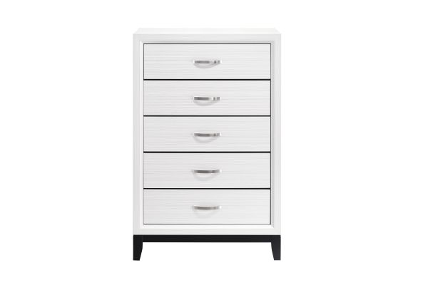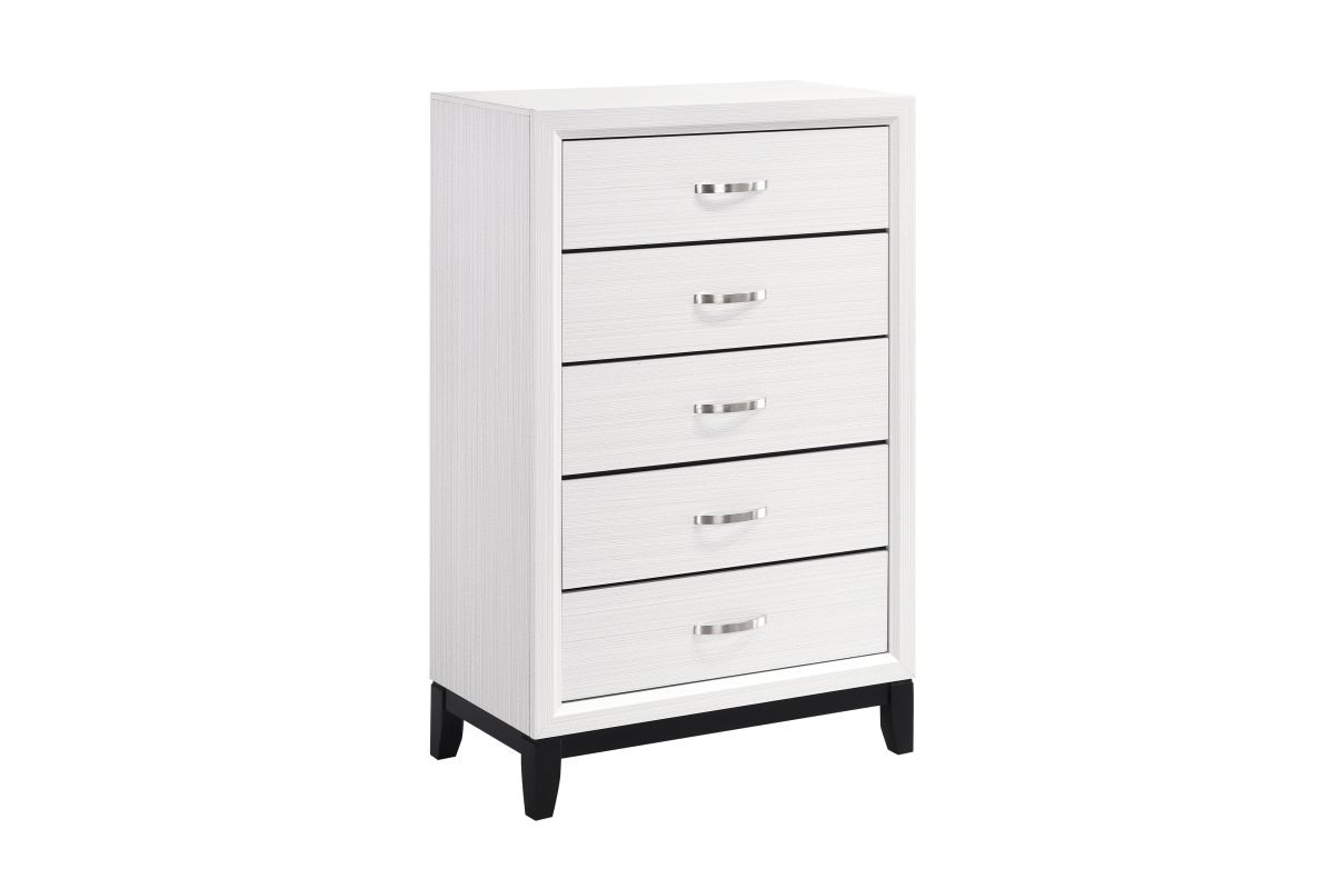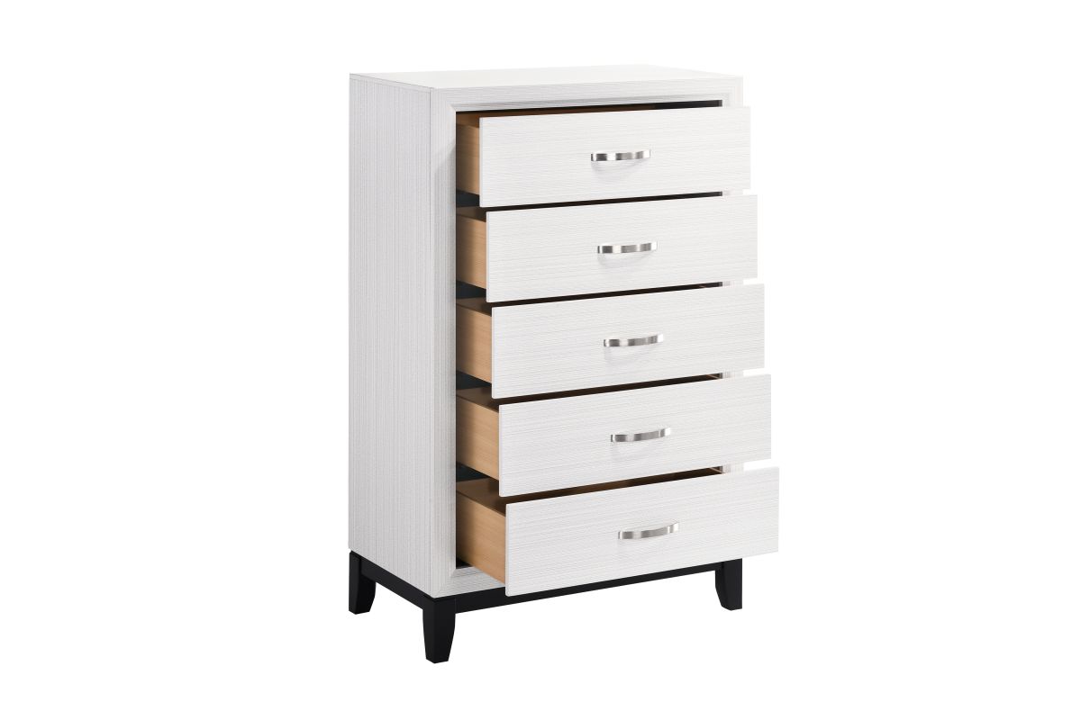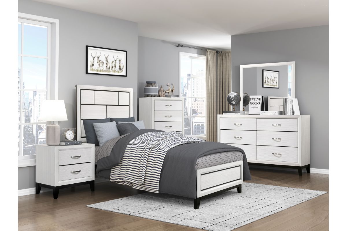 The modern styling of the Davi Collection is achieved by blending the natural look of wood grain and the clean lines of contemporary design to create a unique bedroom group that will fit right in with your home's aesthetic. The defining black lines of the distinct framing of the queen bed effectively accent the printed white wood grain on melamine veneer.