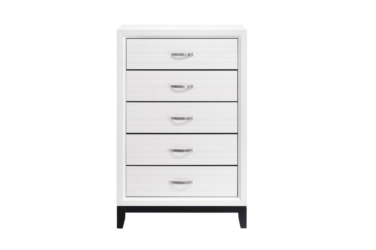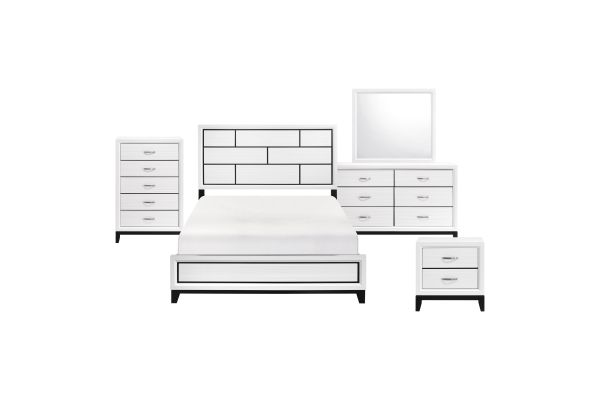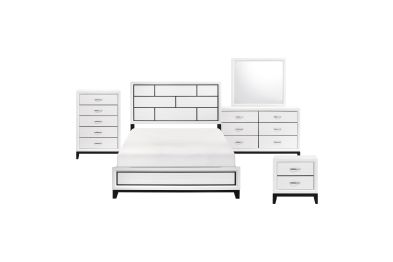 The modern styling of the Davi Collection is achieved by blending the natural look of wood grain and the clean lines of contemporary design to create a unique bedroom group that will fit right in with your home's aesthetic. The defining black lines of the distinct framing of the queen bed effectively accent the printed white wood grain on melamine veneer.