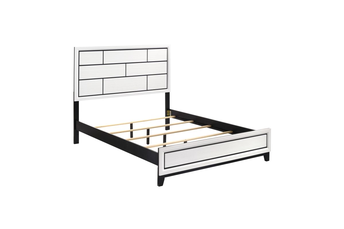 The modern styling of the Davi Collection is achieved by blending the natural look of wood grain and the clean lines of contemporary design to create a unique bedroom group that will fit right in with your home's aesthetic. The defining black lines of the distinct framing of the queen bed effectively accent the printed white wood grain on melamine veneer.