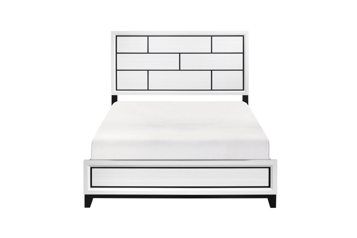 The modern styling of the Davi Collection is achieved by blending the natural look of wood grain and the clean lines of contemporary design to create a unique bedroom group that will fit right in with your home's aesthetic. The defining black lines of the distinct framing of the queen bed effectively accent the printed white wood grain on melamine veneer.