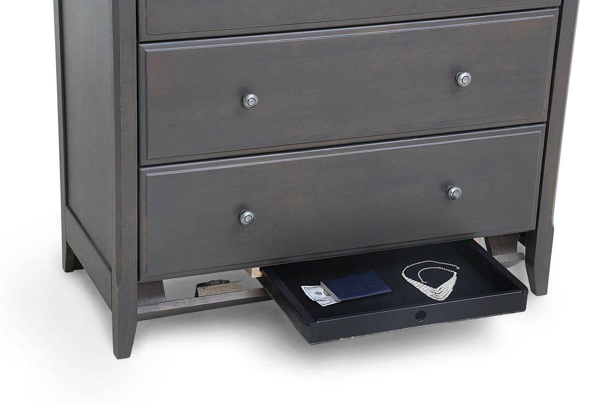 We built Secrets so you can put all your wonderful things away into this trim and stylish dresser group. And we happily show off our quality workmanship with dovetail-joint drawers, hand-rubbed finishes and full-extension drawer slides. Plus our Secrets has a secret! Who doesn't need place to keep a few special things; out of sight and out of reach.