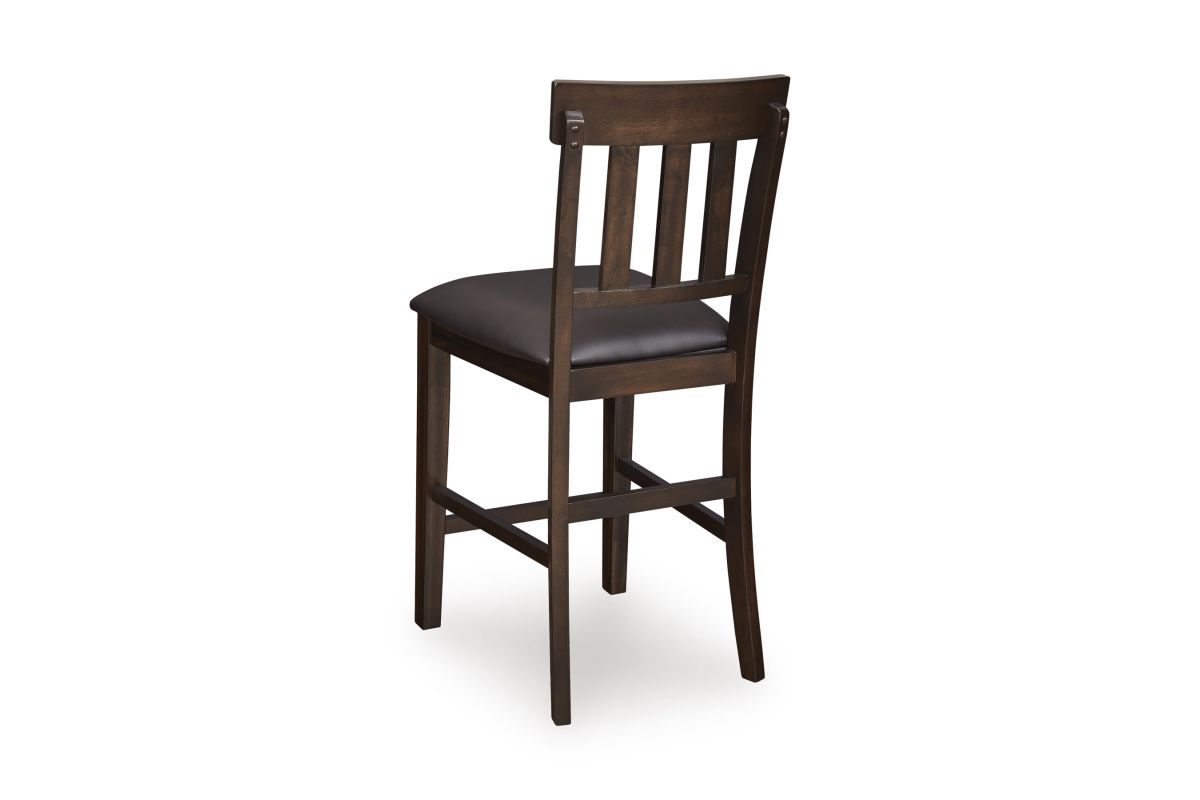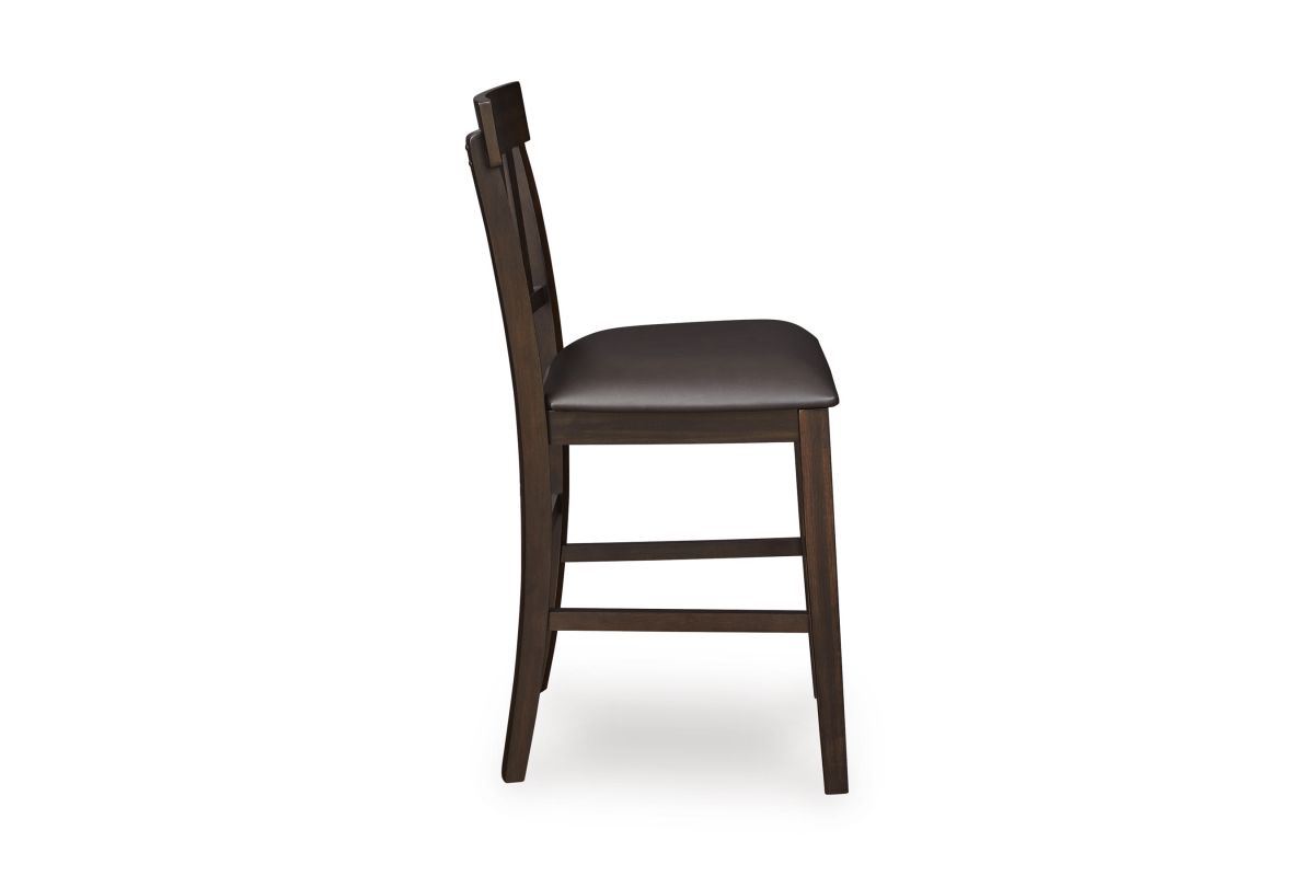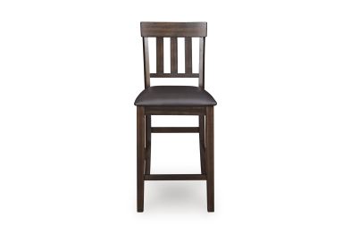 Modern sophistication, beautifully served. This bar stool raises the bar with a cool, rake back design with staggered rungs for added interest. Dark and rich, the monochromatic finish enhances its sleek profile. Faux leather seat upholstery offers easy-care appeal.