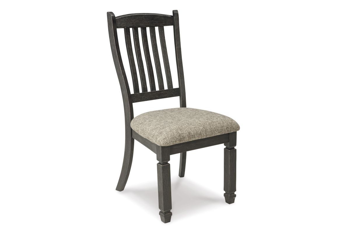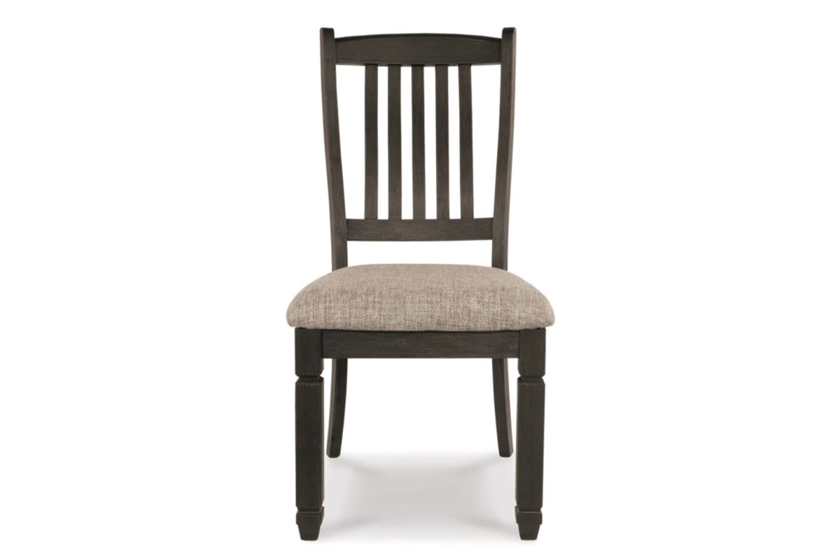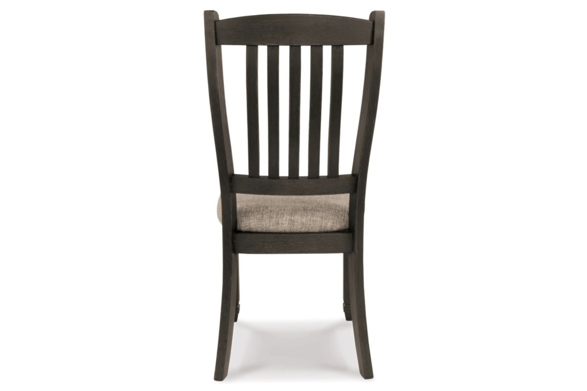 Invite your family into the heart of your home with this upholstered dining room chair. Its slat back and tapered legs, in a beautifully textured black finish, provide a sturdy foundation. And the heavily woven fabric on its boxed cushion seat has a quality feel-good touch. This is trend-right urban farmhouse style.