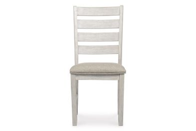 This dining chair invites you to raise the bar for small space living. An inspired choice for coastal chic or modern farmhouse settings, this comfortably cushioned chair sports a grayish white finish with rub through effect for timeworn appeal.