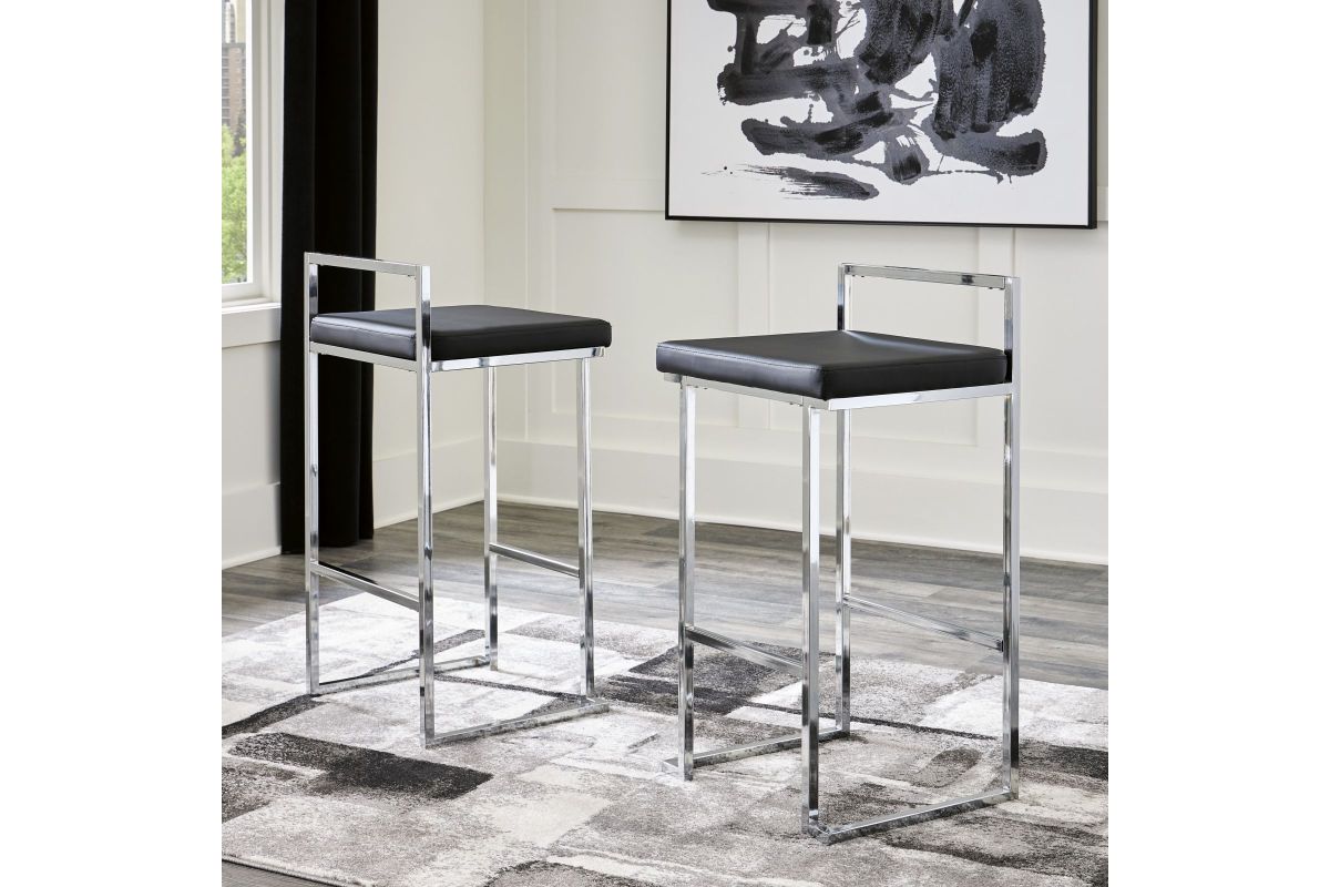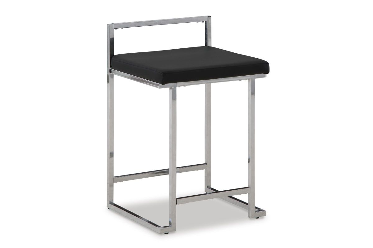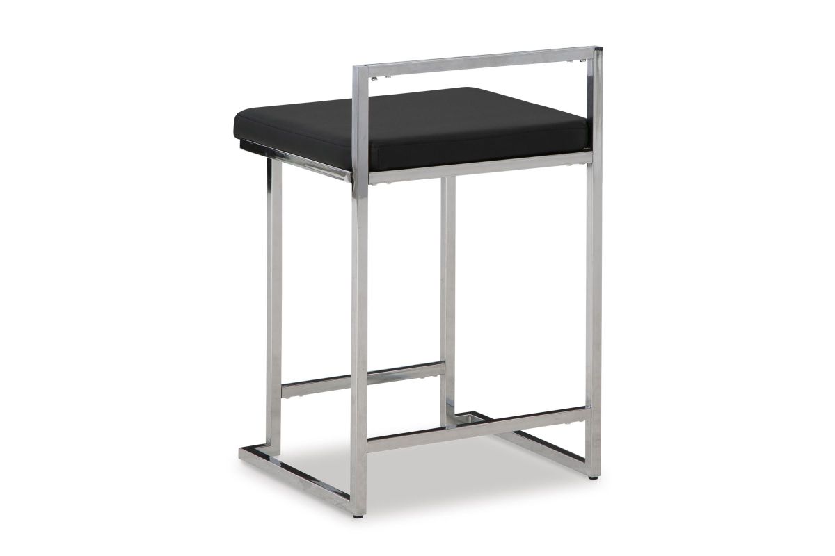 Wowing with a slim but sturdy profile and sculptural design, this bar stool is sure to whet your appetite for ultra-contemporary style. Its comfortably cushioned seat is covered in a fabulous black faux leather, while the metal frame's chrome-tone finish provides visual contrast.