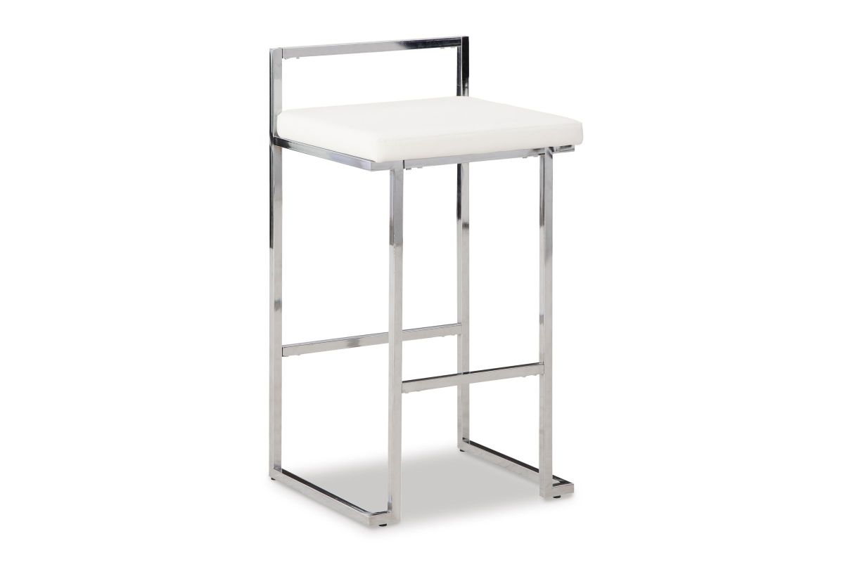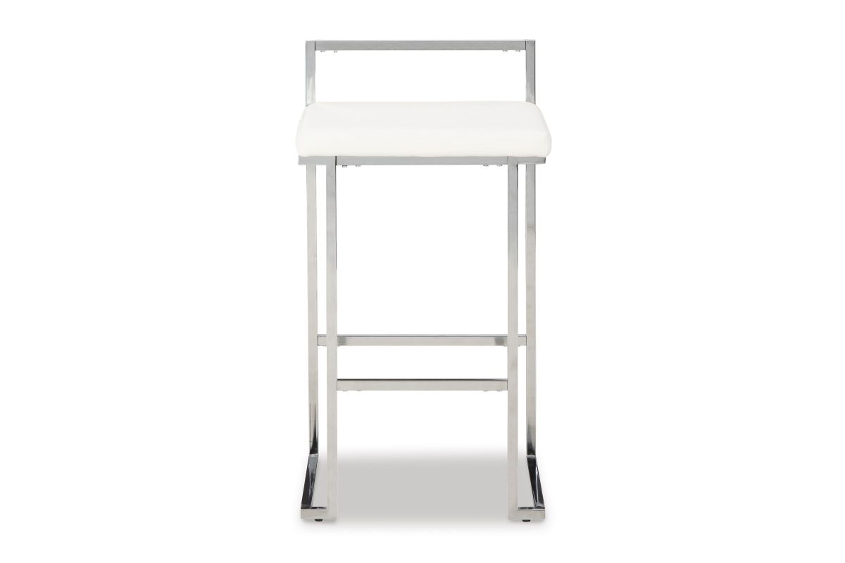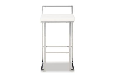 Wowing with a slim but sturdy profile and sculptural design, this bar stool is sure to whet your appetite for ultra-contemporary style. Its comfortably cushioned seat is covered in a fabulous white faux leather, while the metal frame's chrome-tone finish provides visual contrast.