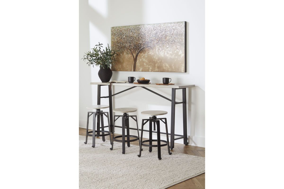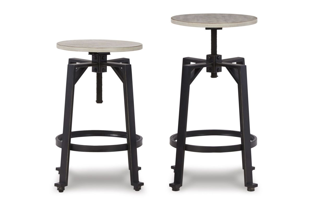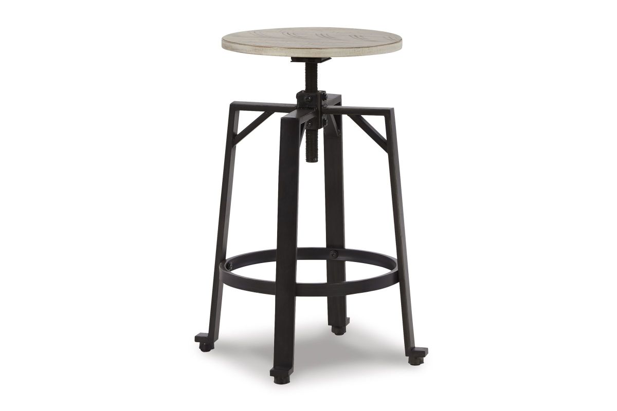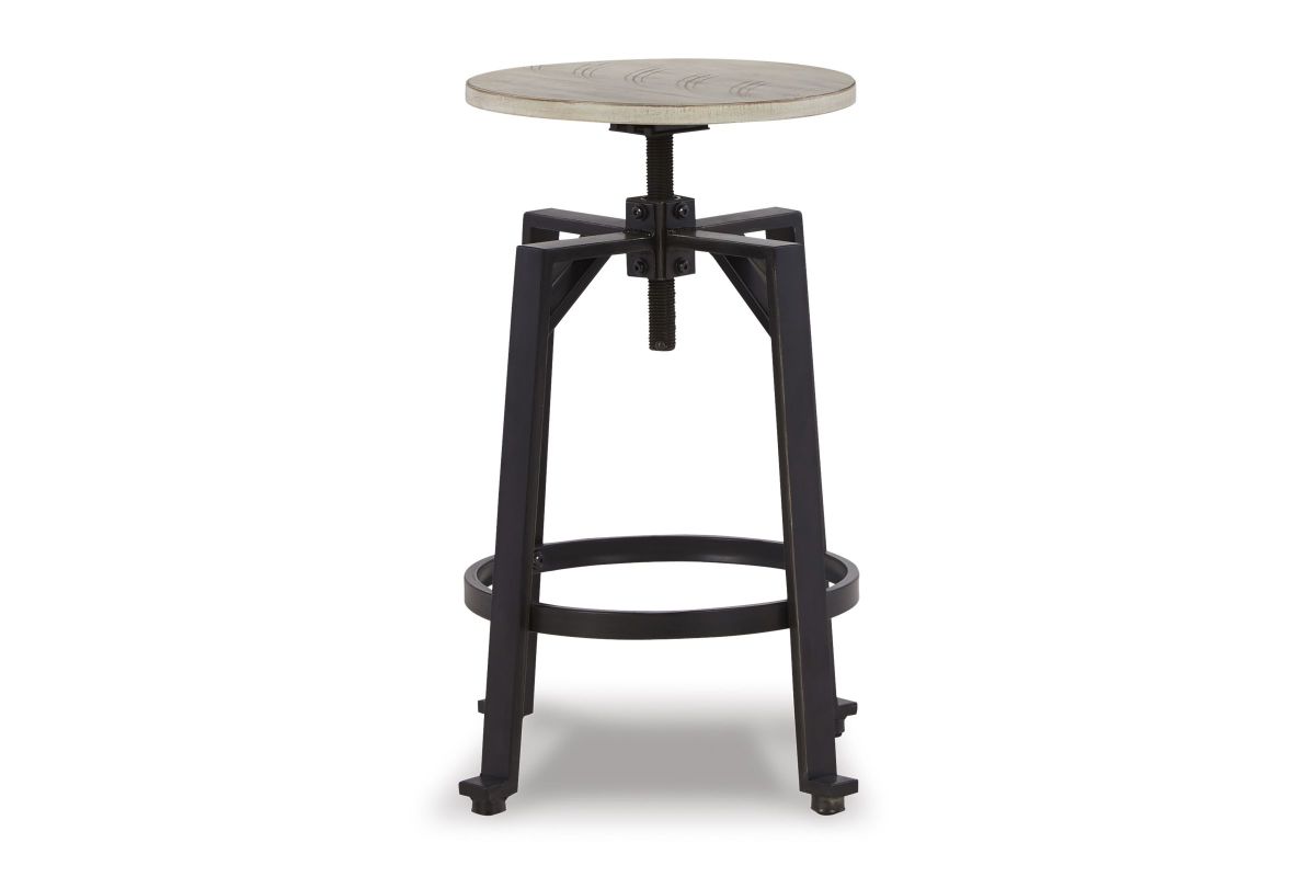 Add a rustic-yet-refined look to your home with this two-tone swivel stool. Its distressed whitewash wood seat with black metal frame conveys an inviting farmhouse style. This charmer easily moves from counter to pub height, giving you and your guests the freedom to sit comfortably while adding a casually cool industrial vibe to your table. Assembly required.