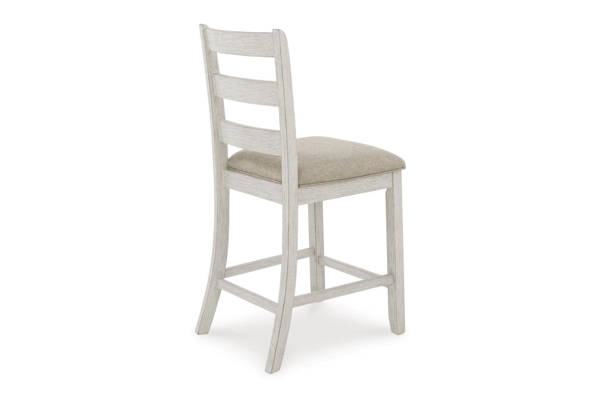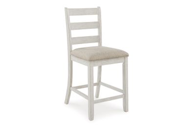 This upholstered bar stool invites you to raise the bar on small space living. An inspired choice for coastal chic or modern farmhouse settings, this comfortably cushioned bar stool with classic ladderback styling sports a grayish white finish with rub through effect for timeworn appeal.