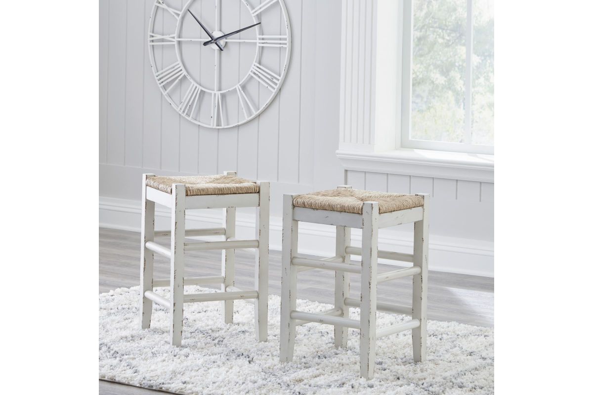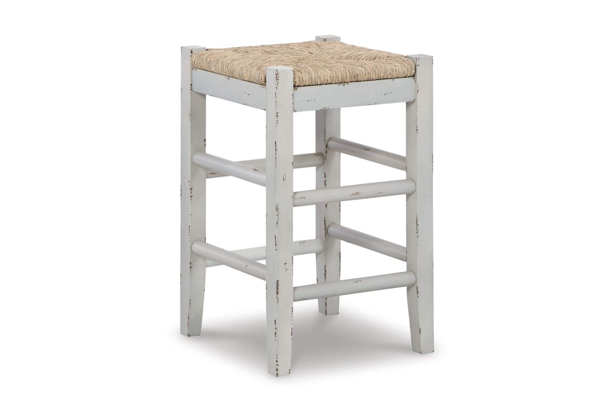 Bring the vintage casual vibe you love to the kitchen with this counter height bar stool. A stylish seating solution in a white rubbed-through finish, this charming stool completes your dining space with ease. The woven seagrass seat and wood stretchers create an effortlessly beautiful look with endless possibilities.