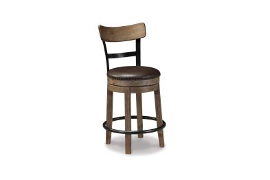 This striking counter height bar stool serves a sense of refinement without all the formality. A 360-degree spin element keeps you in the flow of conversation, while faux leather upholstered seating incorporates comfort and easy cleanup. The frame's signature finish with a wire-brushed effect and gray undertones exudes an easy, relaxed sensibility.