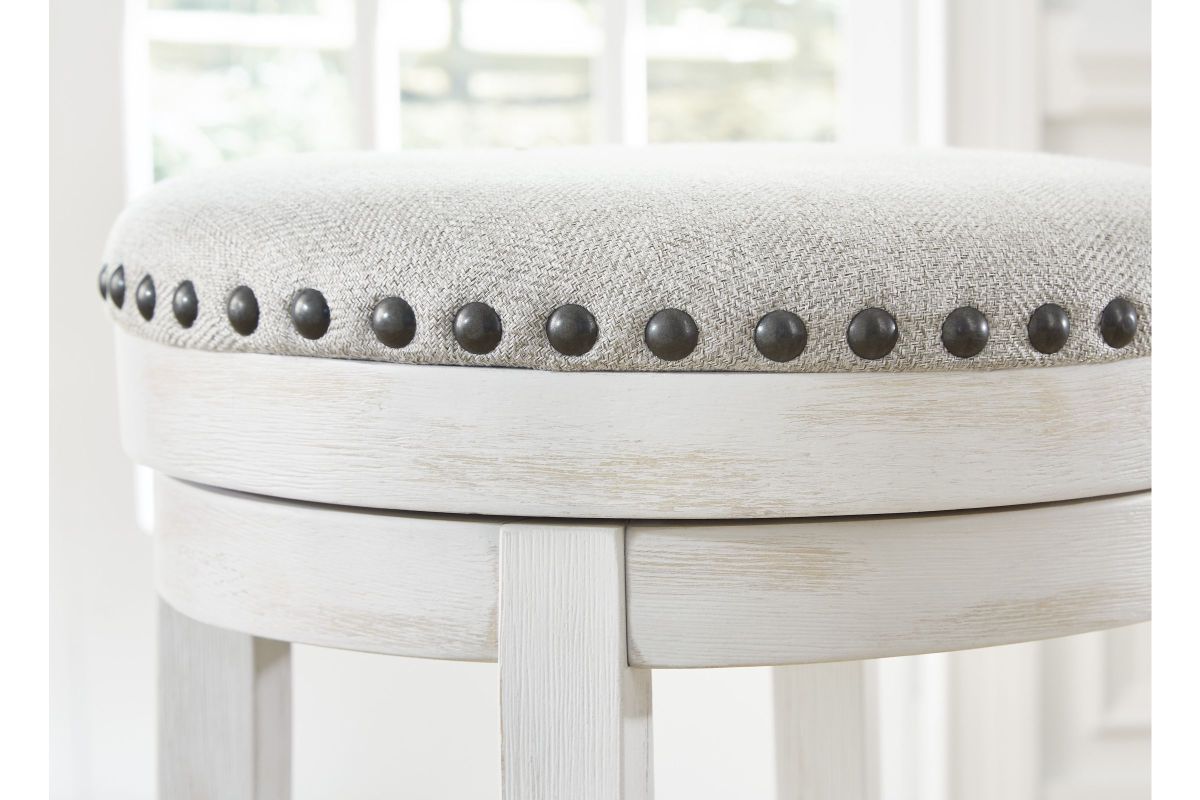 A touch of rustic-industrial style is such a fashion-forward choice, and this swivel stool doesn't disappoint. Its smooth swivel motion adds function, while nailhead trim brings effortless style. A softly upholstered cushion seat in beige keeps things cozy. Set this stool by the kitchen bar for a visually intriguing mix of new and old. Assembly required.
