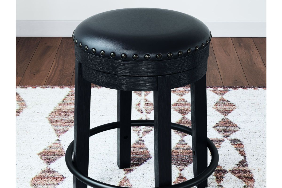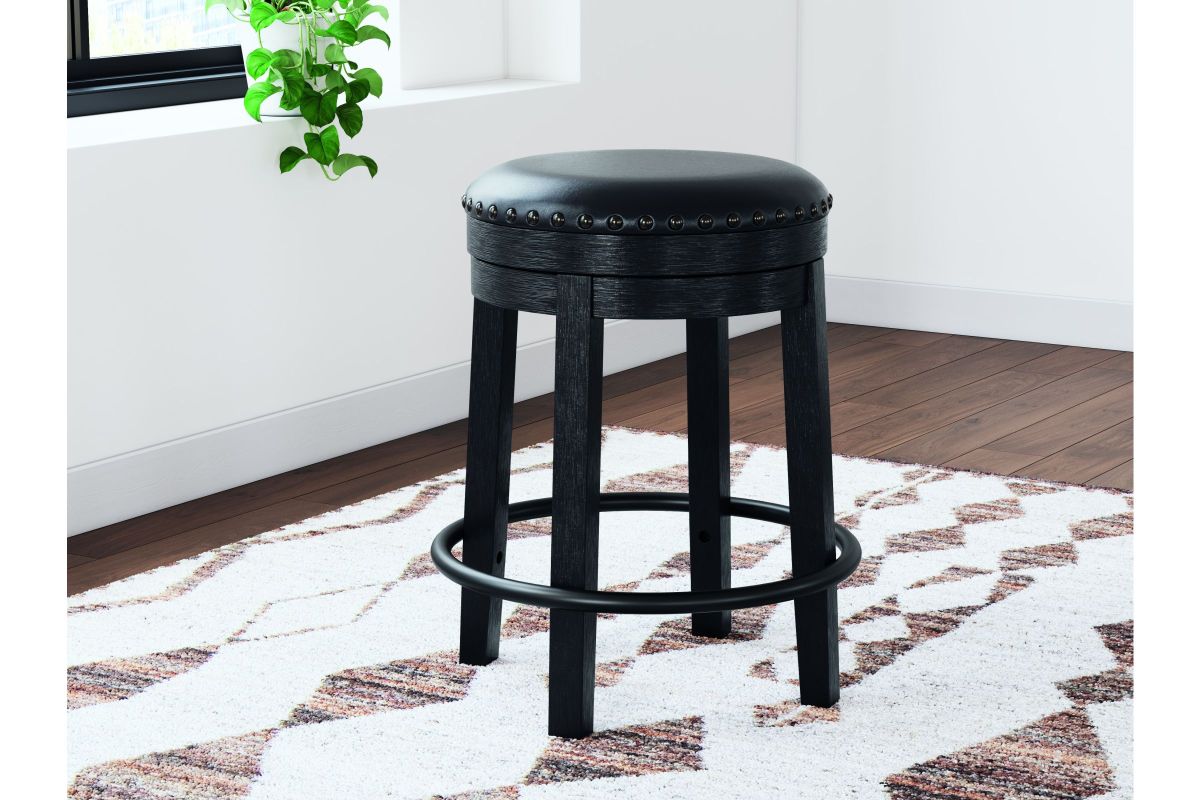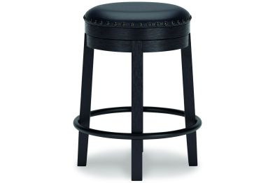 A touch of rustic-industrial style is such a fashion-forward choice, and this counter height bar stool doesn't disappoint. Its smooth swivel motion adds function, while the nailhead trim brings effortless style. Black faux leather upholstery keeps things edgy. Set this stool by the kitchen bar for a visually intriguing mix of new and old. Assembly required.