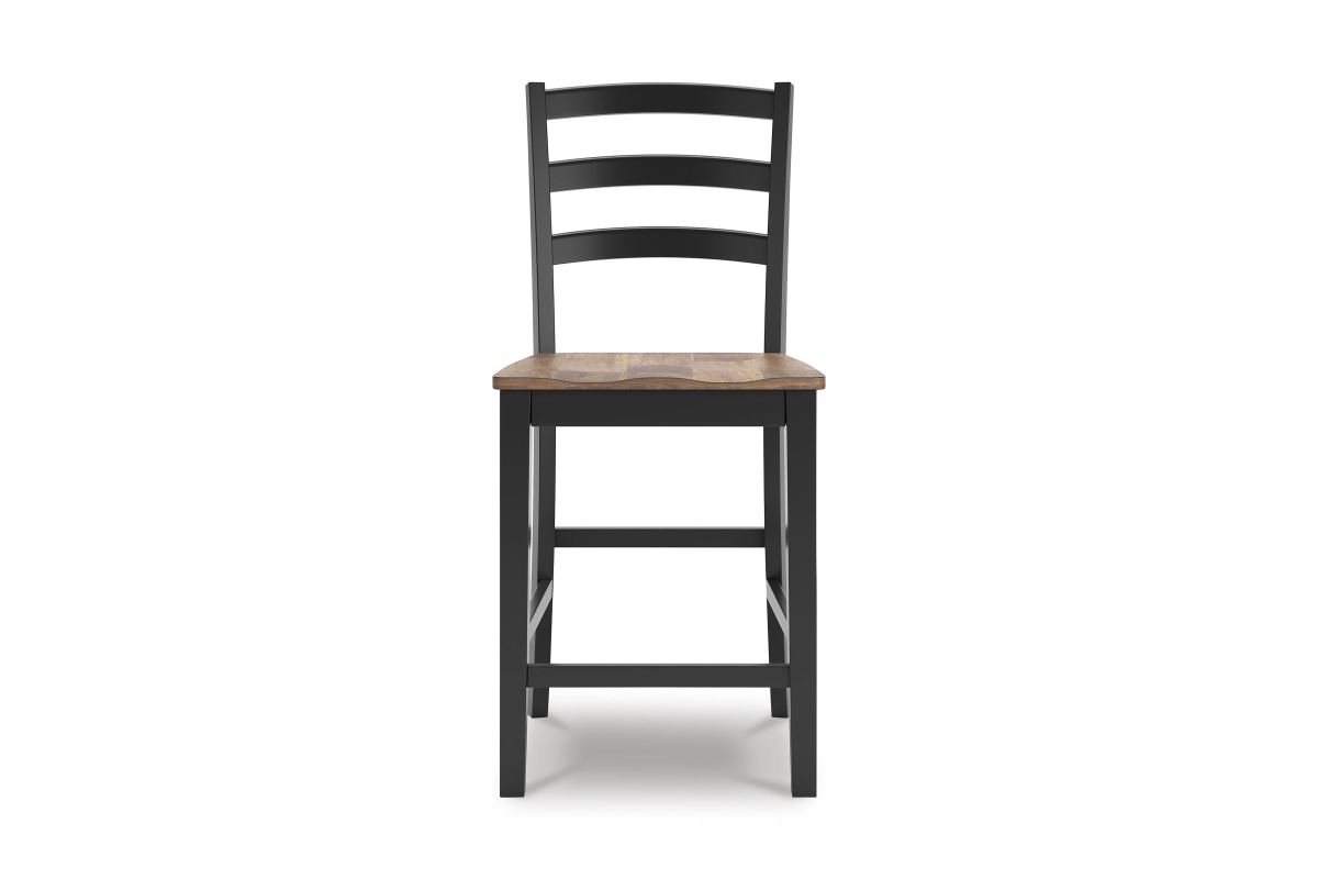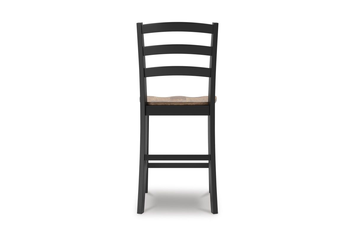 This counter height bar stool dresses up your favorite farmhouse motifs with modern flair. A contoured butcher-block style seat keeps you comfortable and provides a ruggedly chic contrast to the sleek black frame. Assembly required.