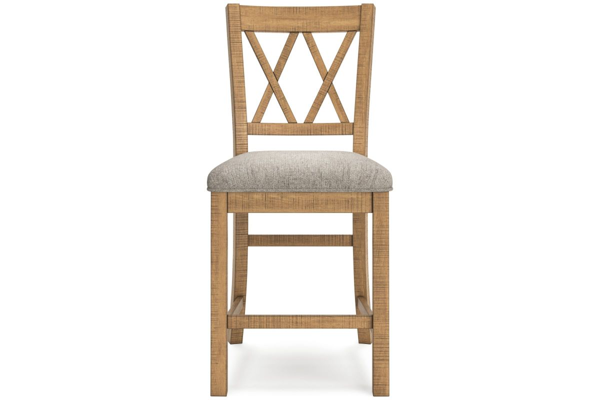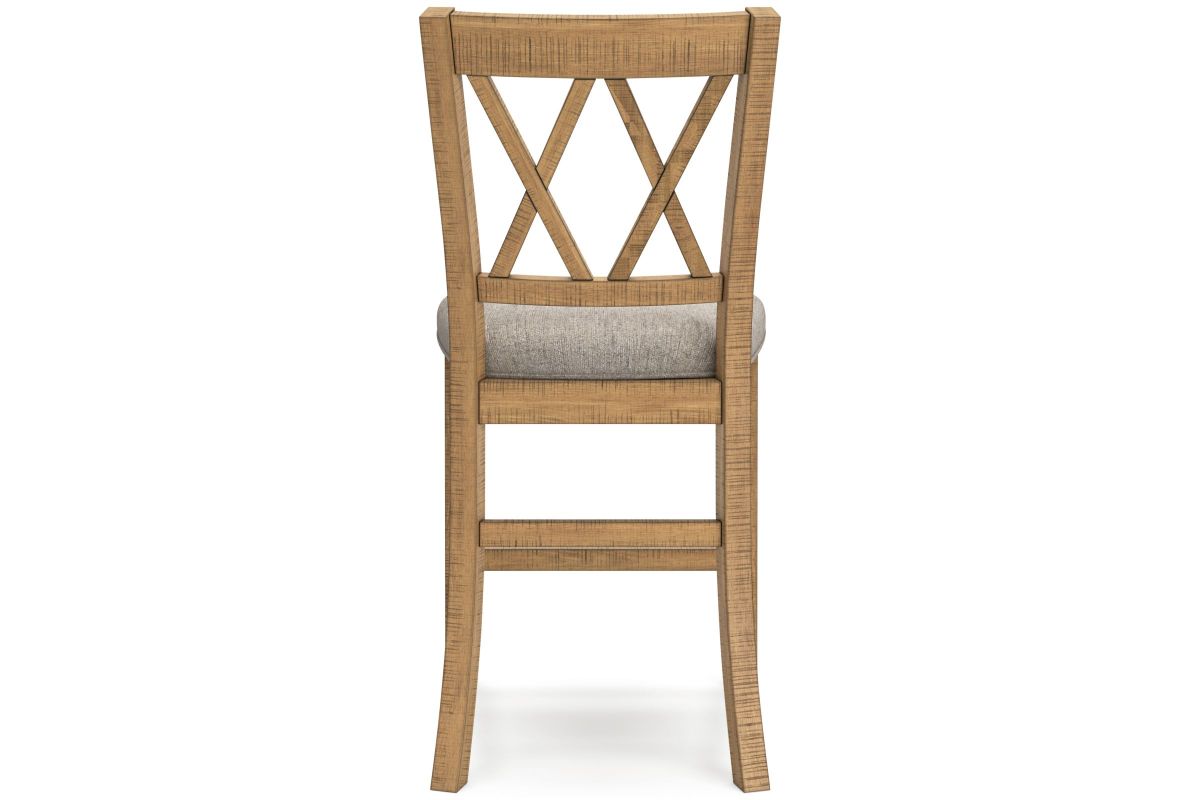 This counter height bar stool is a favorite choice for casual rustic interiors. Offering design-worthy seating, this bar stool is your answer for everyday living and impromptu guests. And the stool's double X-back with textured upholstered seat? Deliciously versatile and comfortable. Assembly required