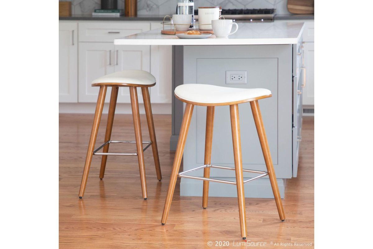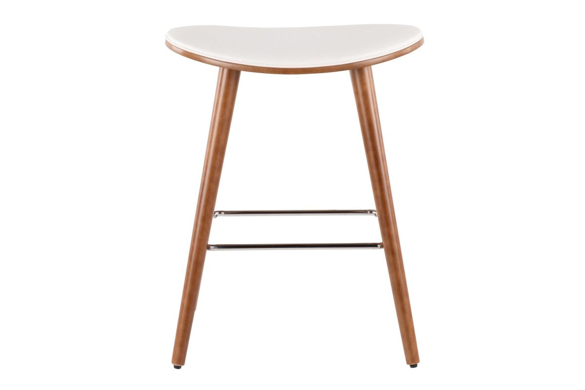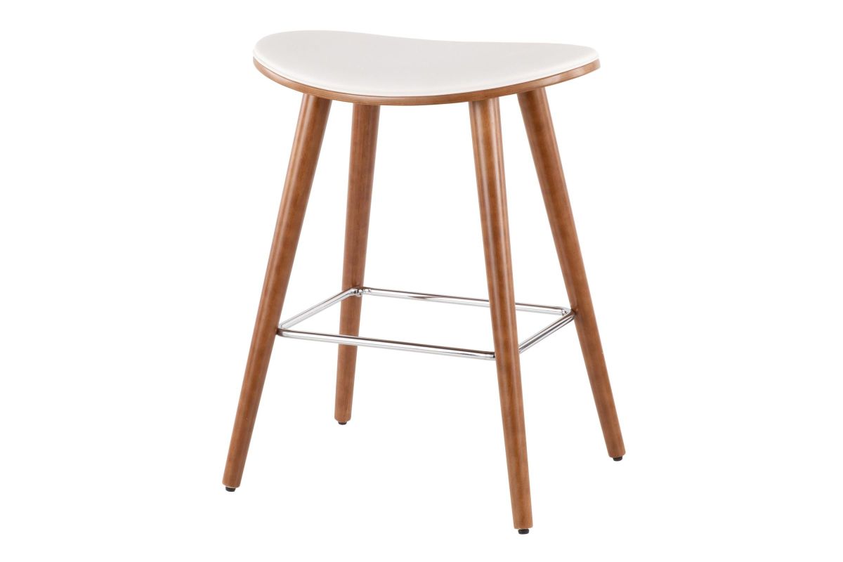 Ultimate comfort meets the ultimate style in the Saddle Counter Stool by LumiSource. With a generous contoured upholstered seat atop tapered wood legs and metal footrest, this fixed-base stool puts you in the saddle. Available in a variety of finishes and upholstery options.