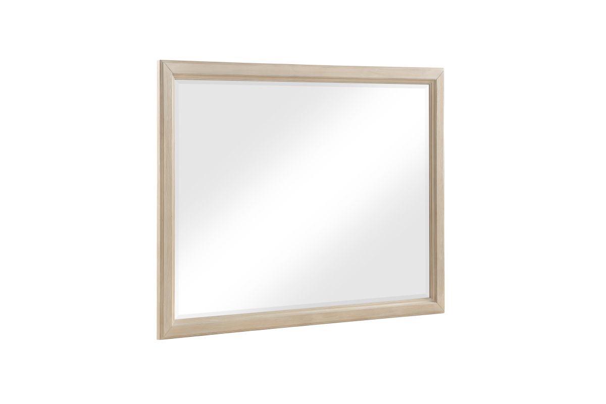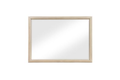 Elevate your bedroom's style and functionality with this elegant rectangular mirror, designed to perfectly complement your dresser. Crafted with a beautiful beige finish from a durable blend of Mindy veneer, wood, and engineered wood, this mirror frame brings a touch of rustic charm to any space. Its clean lines and classic design make it a versatile piece that enhances both modern and farmhouse-style decor. The mirror is framed to create a polished and cohesive look when paired with a matching dresser, reflecting light to make your room feel more open and bright. It provides a clear, high-quality reflection, making it ideal for getting ready each day.