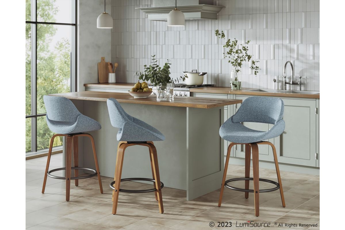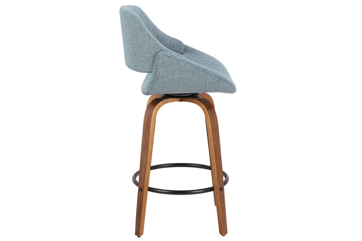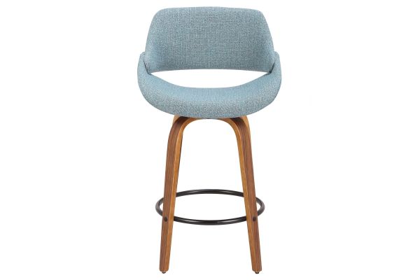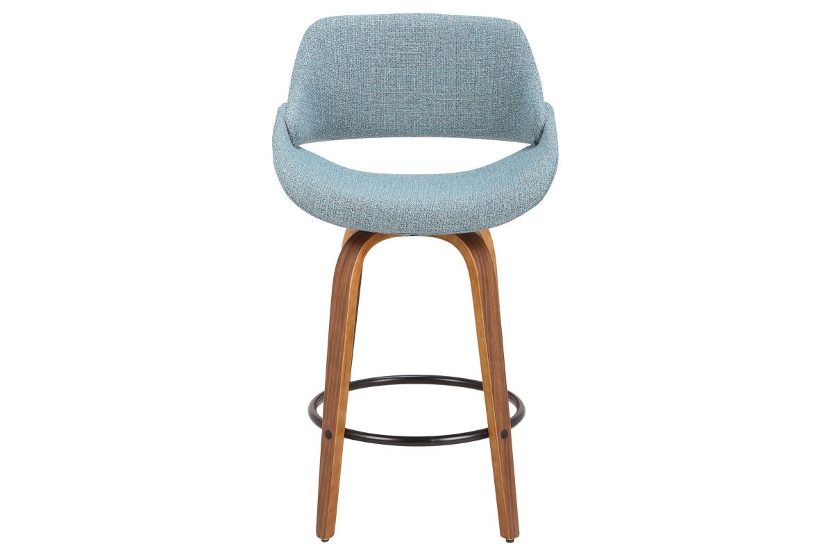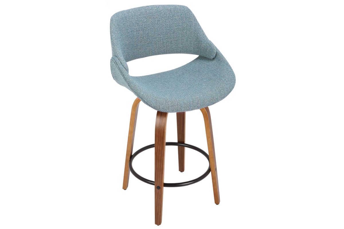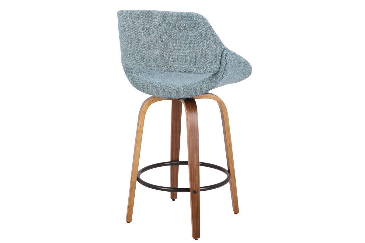 The wide and welcoming seat of the LumiSource Fabrico Counter Stool beckons one to sit and relax. A curved back and contoured upholstered seat is accented by flared walnut wood swivel legs that add to the stylish yet comfortable design. Available in a variety of upholstery colors, choose the one that suits your space best.