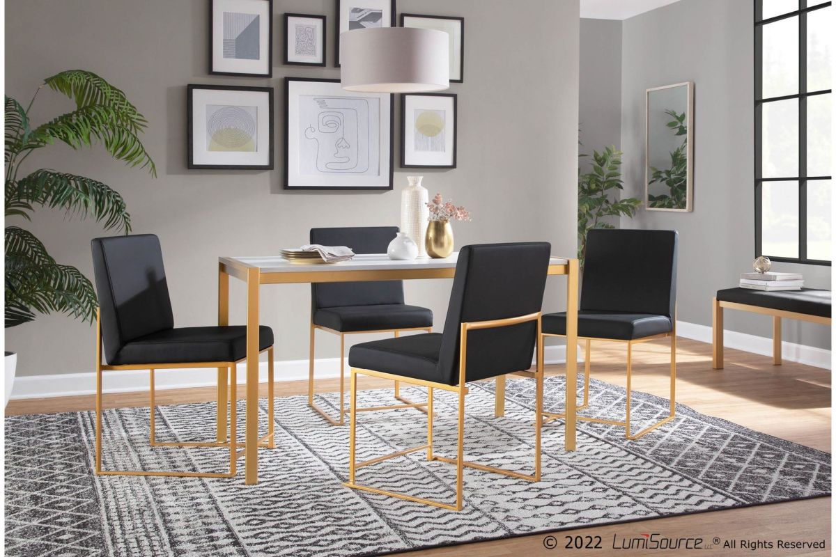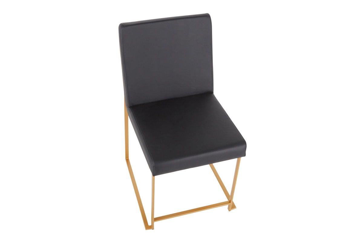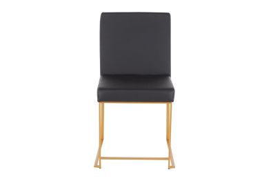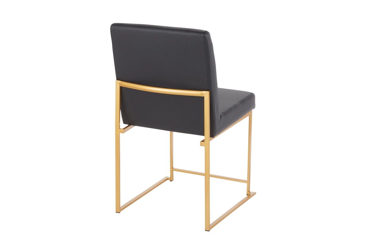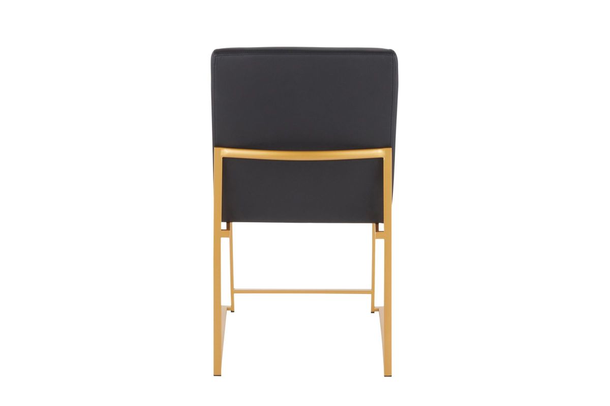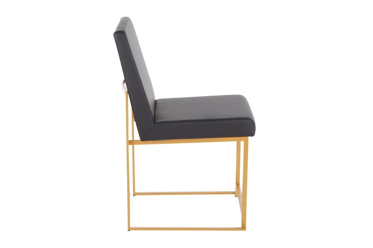 Modern elegance at its finest, the Fuji High Back Dining Chair features an extra-wide (and extra comfortable) upholstered seat, high padded backrest, and stylish metal frame. The perfect dining chair, the Fuji is multi-functional and can be used as extra seating in a sitting room or as a stylish office chair. Available in stainless steel or gold metal frame and a variety of sleek upholstery colors. Pair with the Fuji Dinette Table for a complete look.