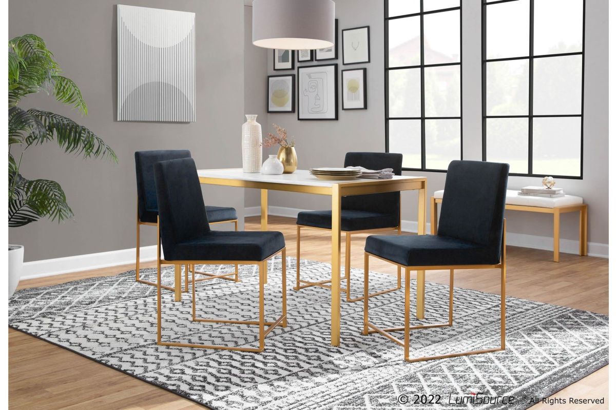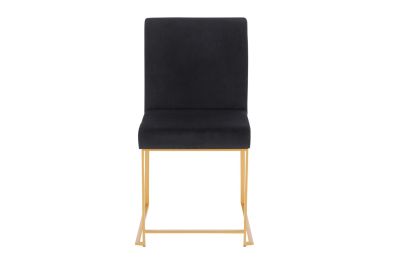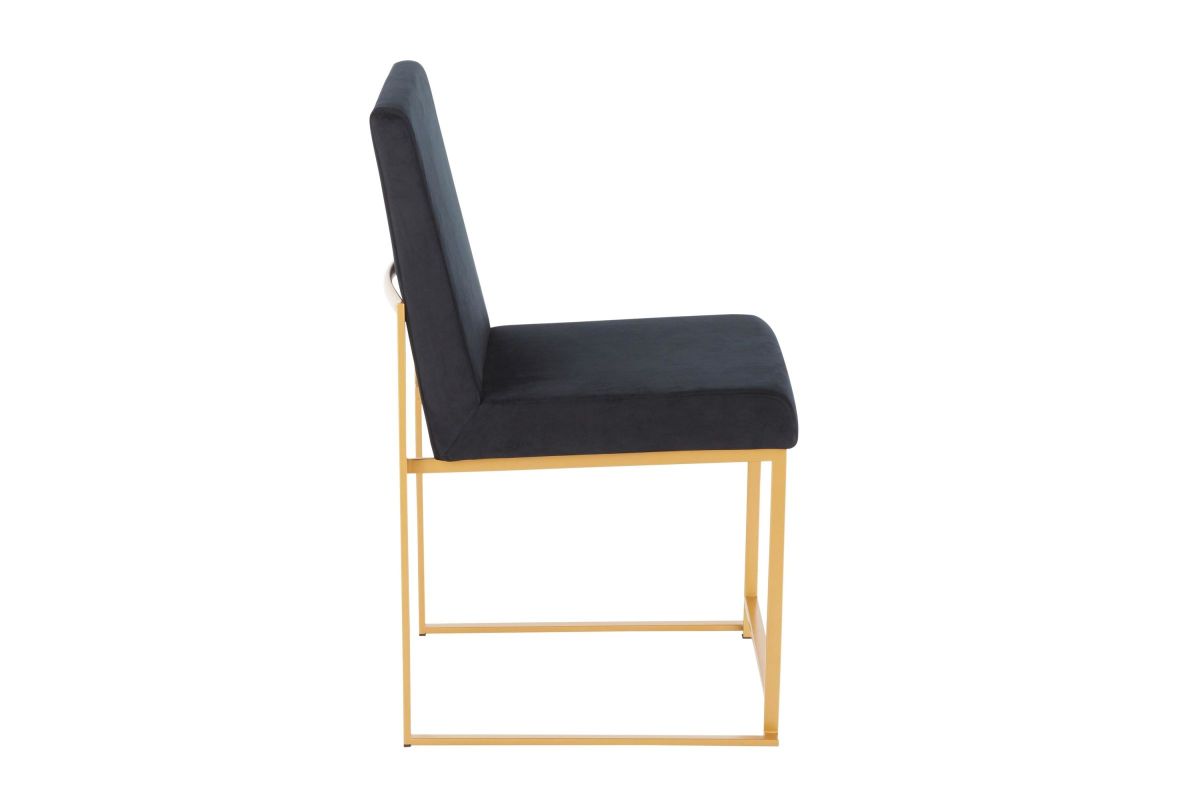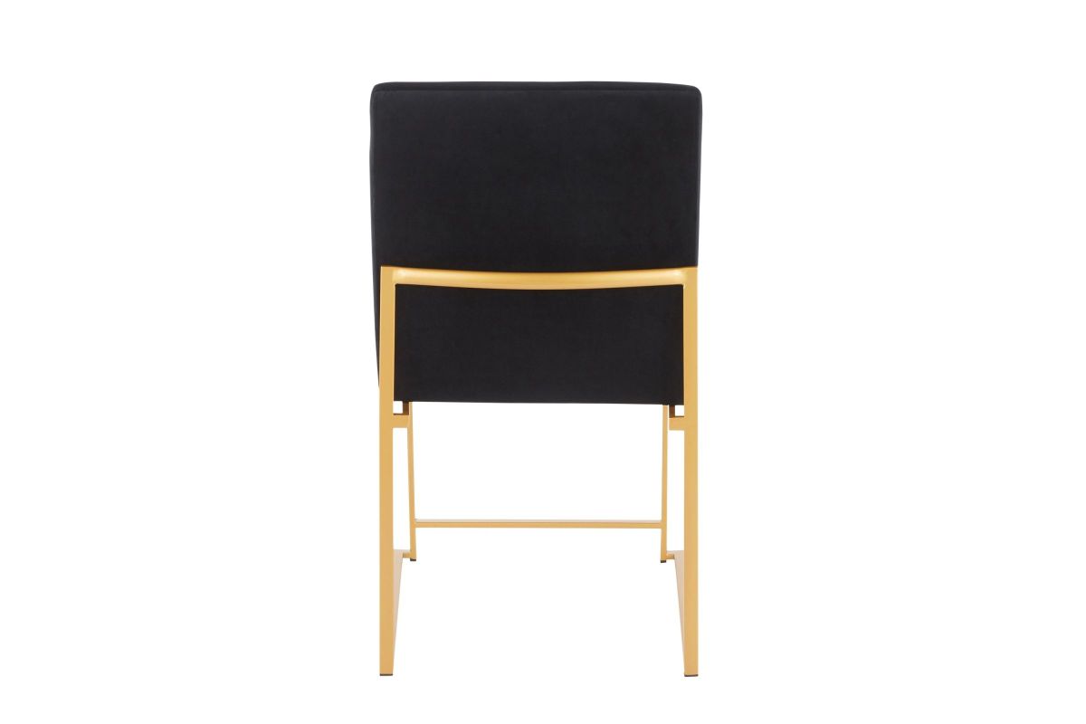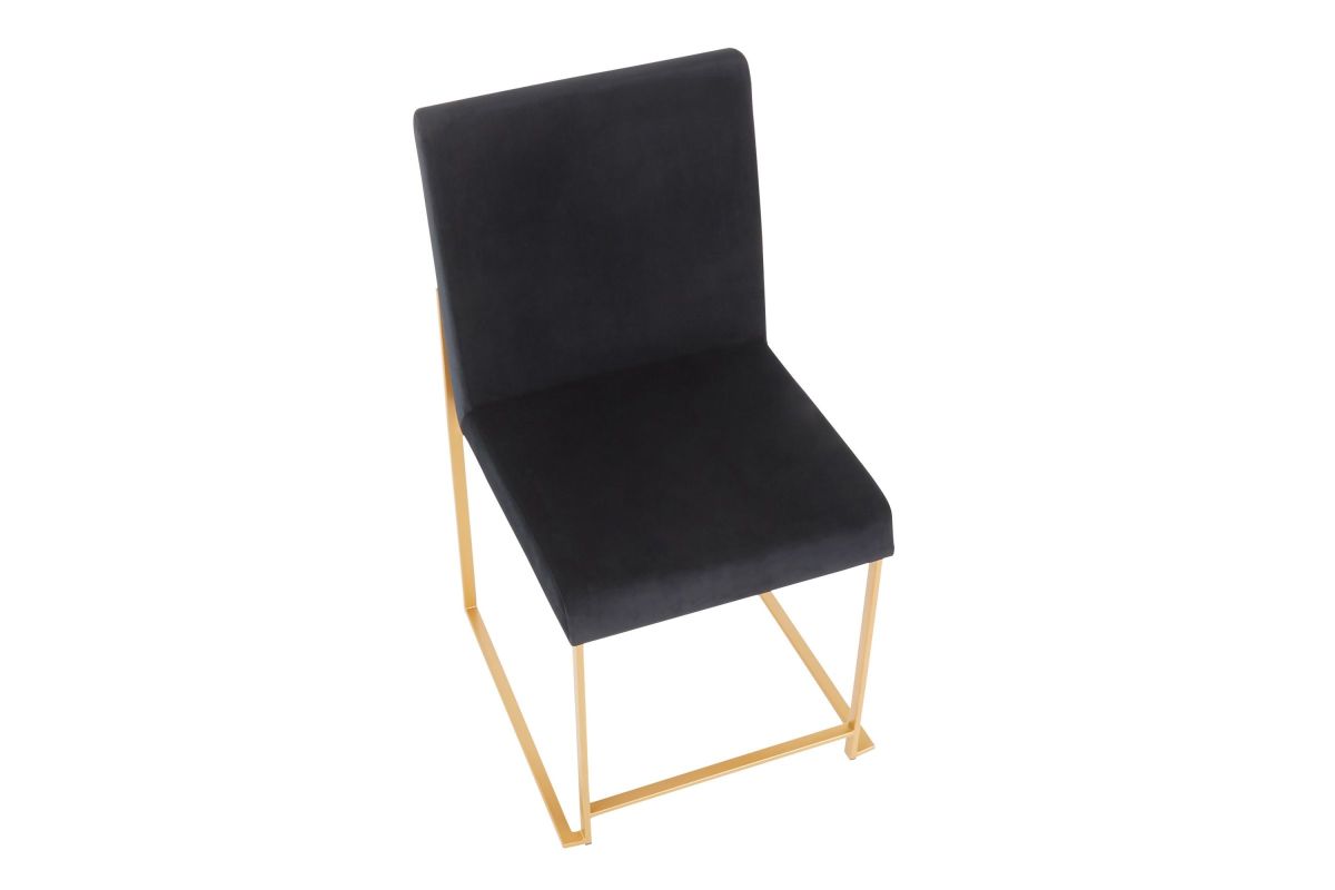 Modern elegance at its finest, the Fuji High Back Dining Chair features an extra-wide (and extra comfortable) upholstered seat, high padded backrest, and stylish metal frame. The perfect dining chair, the Fuji is multi-functional and can be used as extra seating in a sitting room or as a stylish office chair. Available in stainless steel or gold metal frame and a variety of sleek upholstery colors. Pair with the Fuji Dinette Table for a complete look.