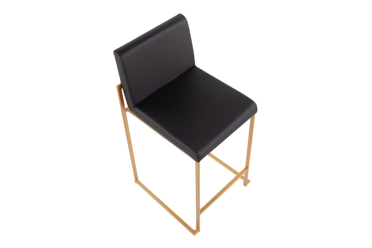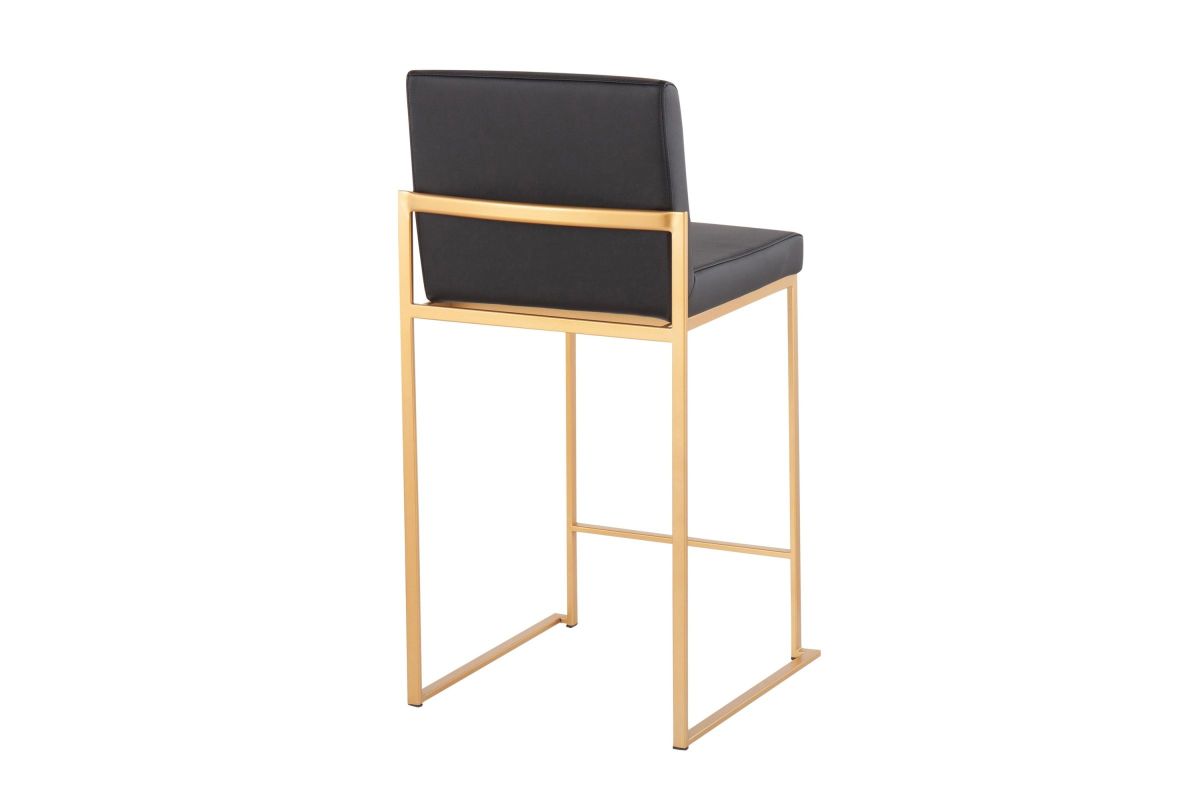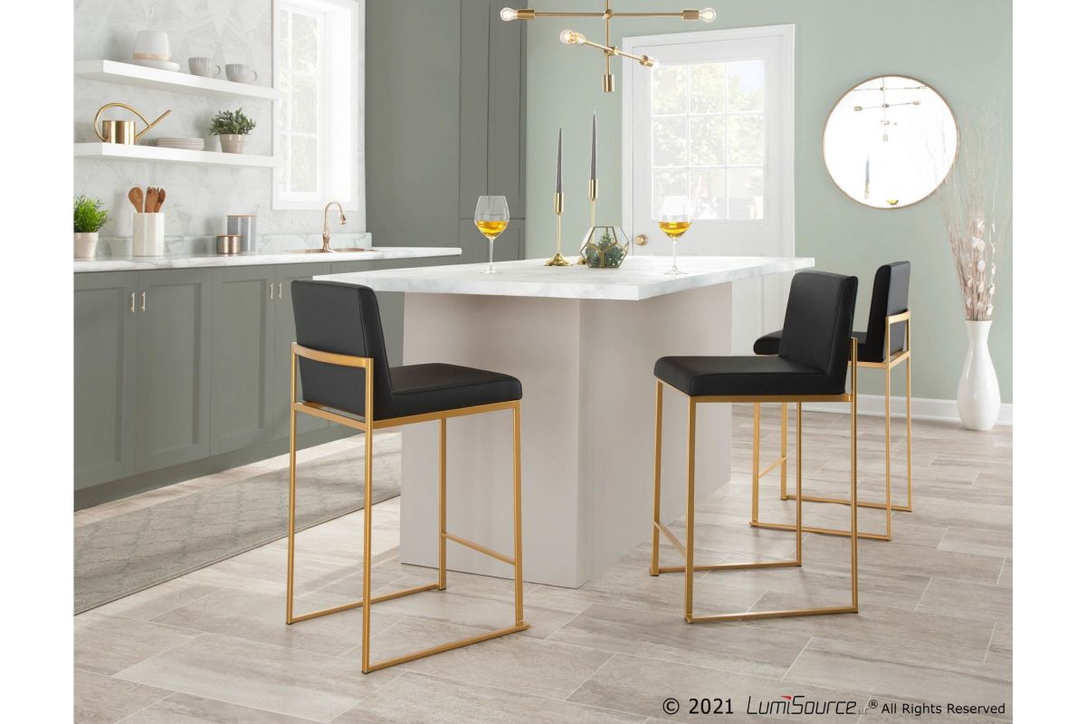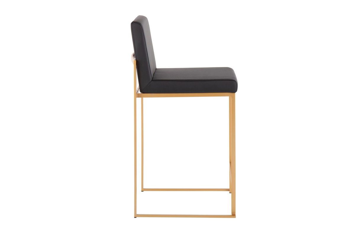 Modern elegance at its finest, the Fuji High Back Counter Stool features an extra-wide (and extra comfortable) upholstered seat, a high padded backrest, and a stylish metal frame. The perfect contemporary counter stool, the Fuji is available in a stainless steel or gold metal frame and comes in a variety of sleek upholstery colors.