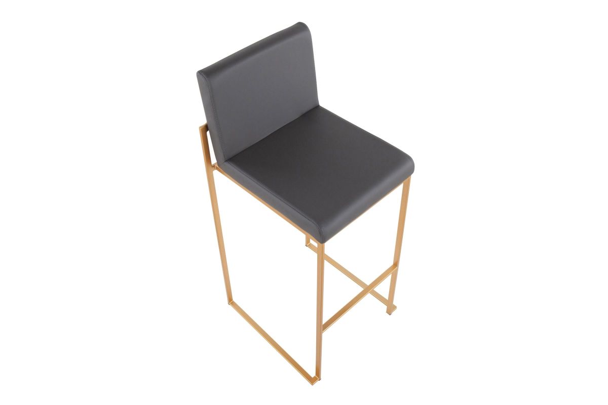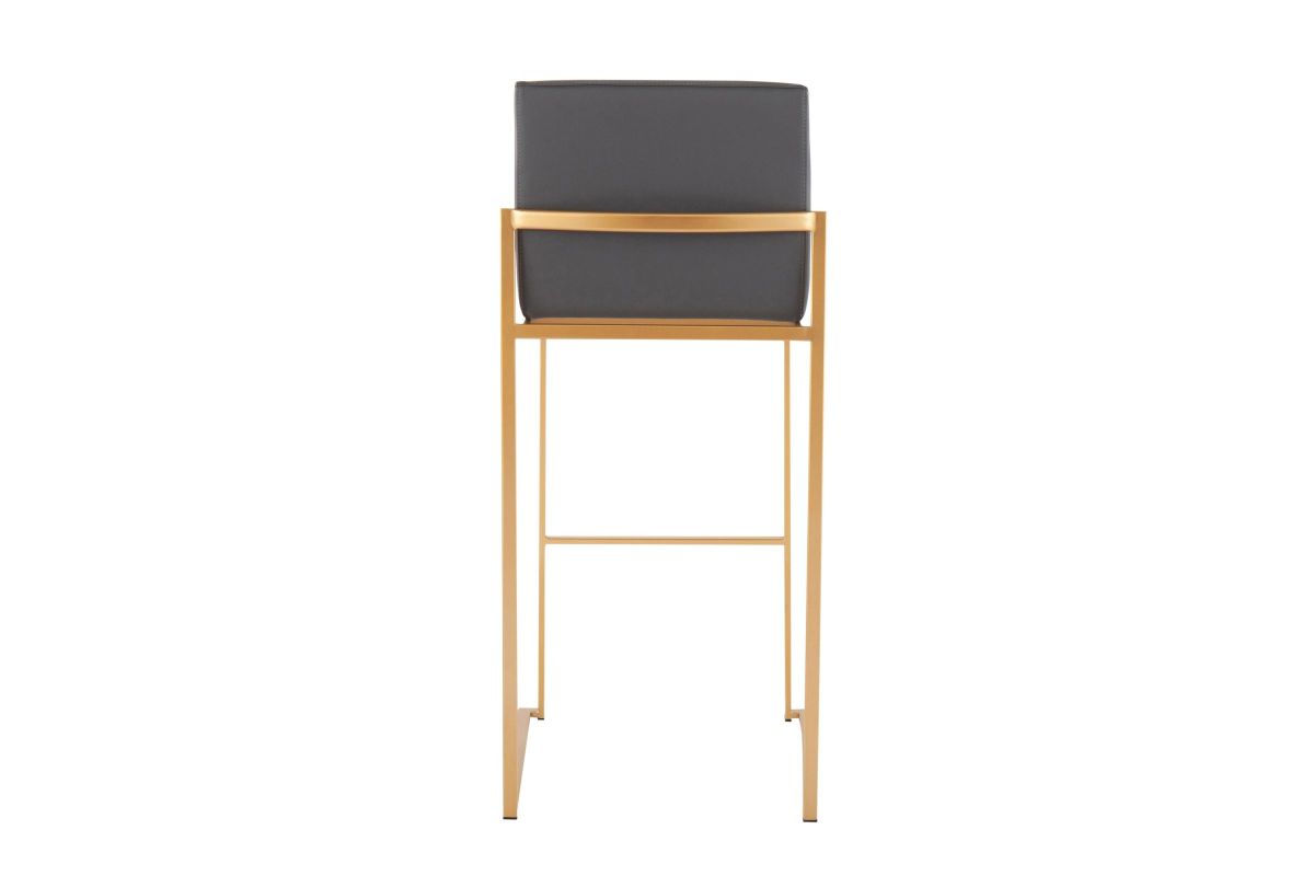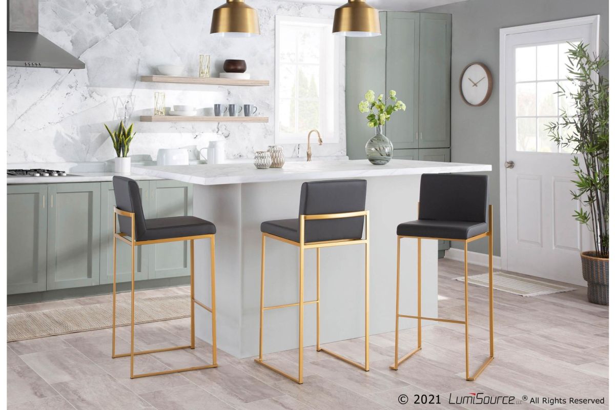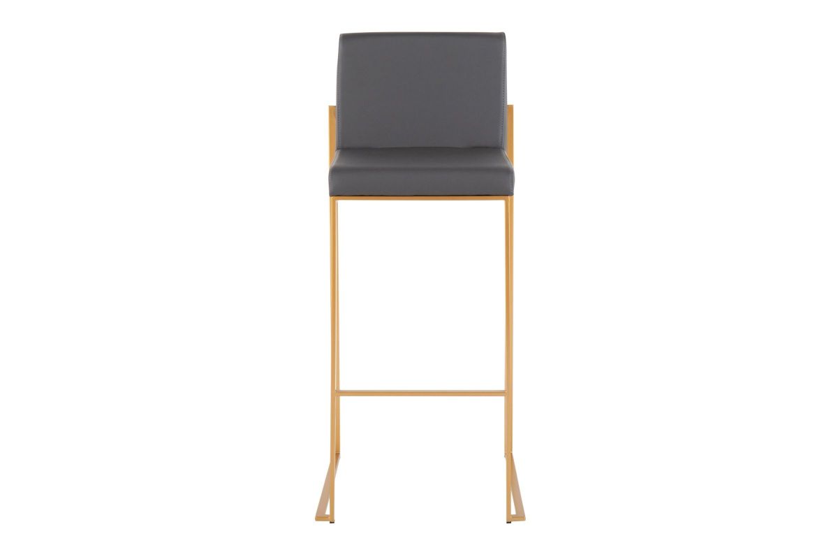 Modern elegance at its finest, the Fuji High Back Bar Stool features an extra-wide (and extra comfortable) upholstered seat, a high padded backrest, and a stylish metal frame. The perfect contemporary bar stool, the Fuji is available in a stainless steel or gold metal frame and comes in a variety of sleek upholstery colors.