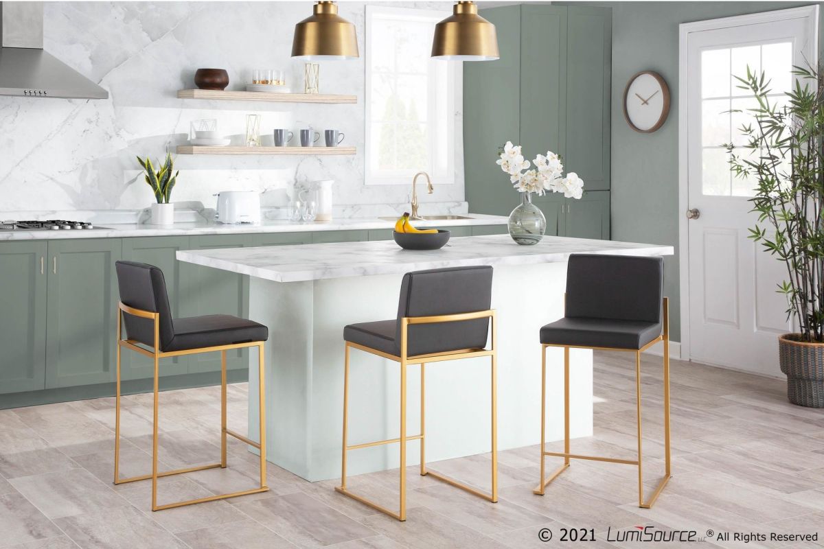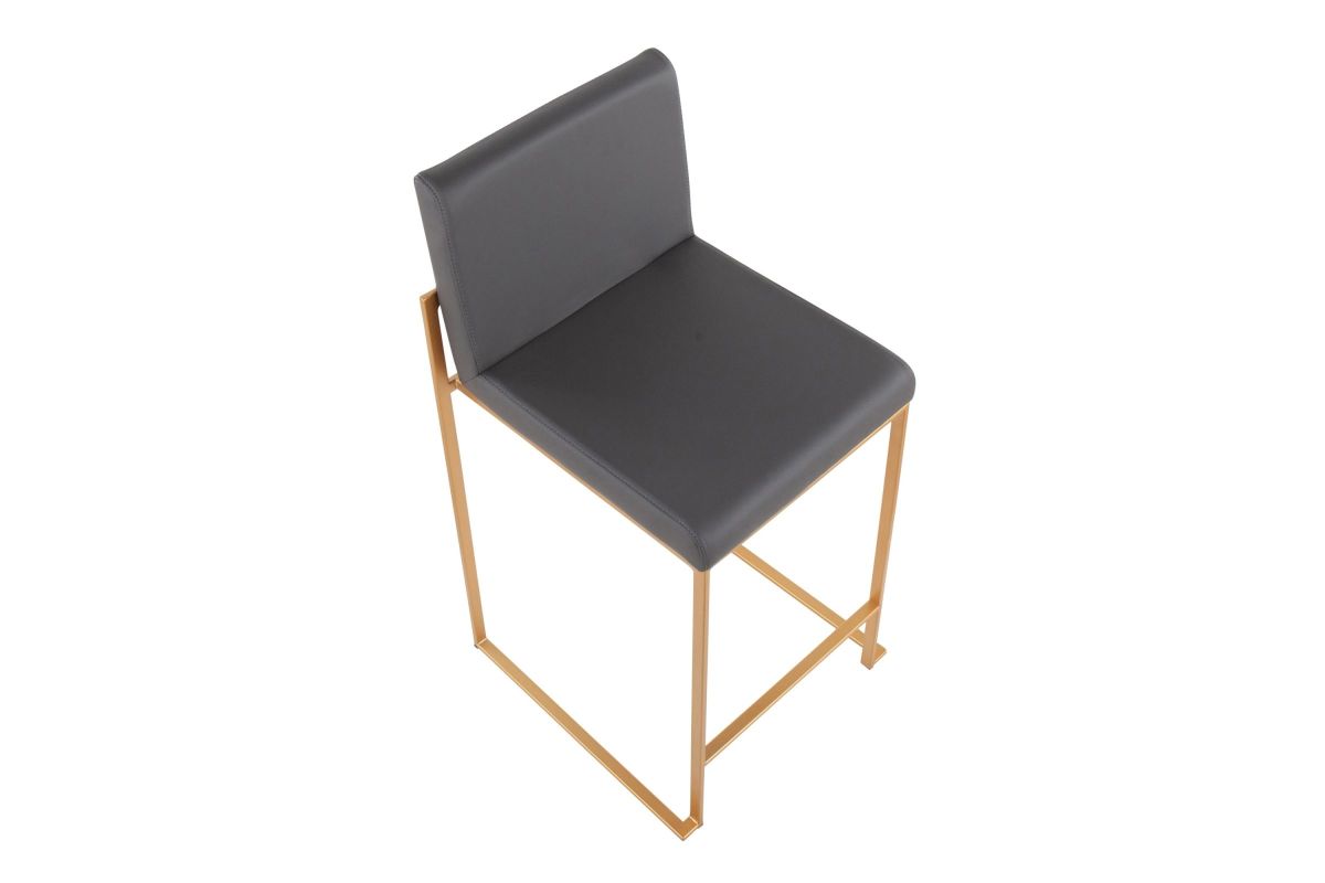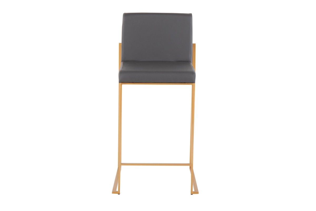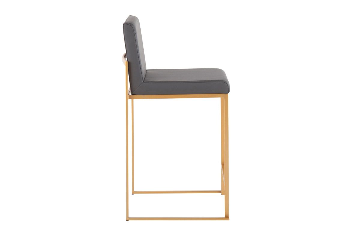 Modern elegance at its finest, the Fuji High Back Counter Stool features an extra-wide (and extra comfortable) upholstered seat, a high padded backrest, and a stylish metal frame. The perfect contemporary counter stool, the Fuji is available in a stainless steel or gold metal frame and comes in a variety of sleek upholstery colors.