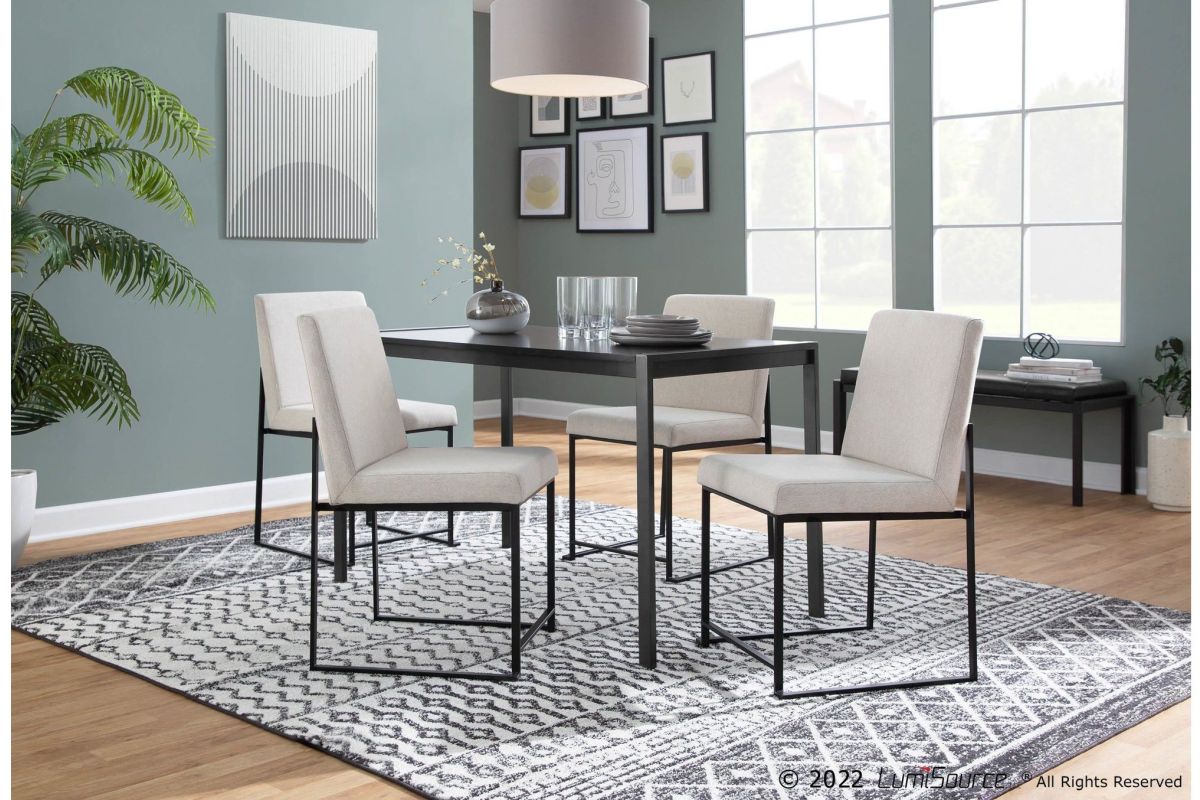 Modern elegance at its finest, the Fuji High Back Dining Chair by LumiSource features an extra-wide (and extra comfortable) upholstered seat, high padded backrest, and stylish metal frame. The perfect dining chair, the Fuji is multi-functional and can be used as extra seating in a sitting room or as a stylish office chair. Available in stainless steel, gold, or black metal frame and a variety of sleek upholstery colors.