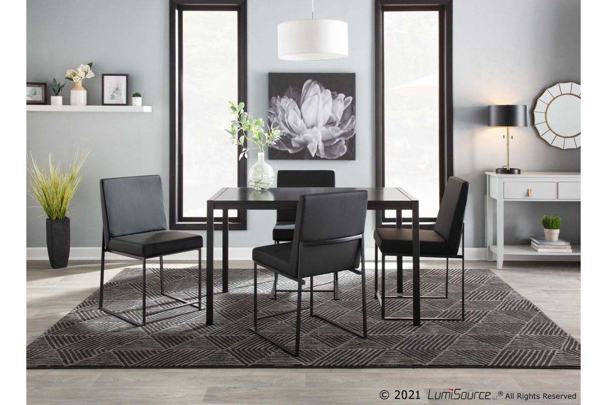 Modern elegance at its finest, the Fuji High Back Dining Chair features an extra-wide (and extra comfortable) upholstered seat, high padded backrest, and stylish metal frame. The perfect dining chair, the Fuji is multi-functional and can be used as extra seating in a sitting room or as a stylish office chair. Available in stainless steel or gold metal frame and a variety of sleek upholstery colors. Pair with the Fuji Dinette Table for a complete look.