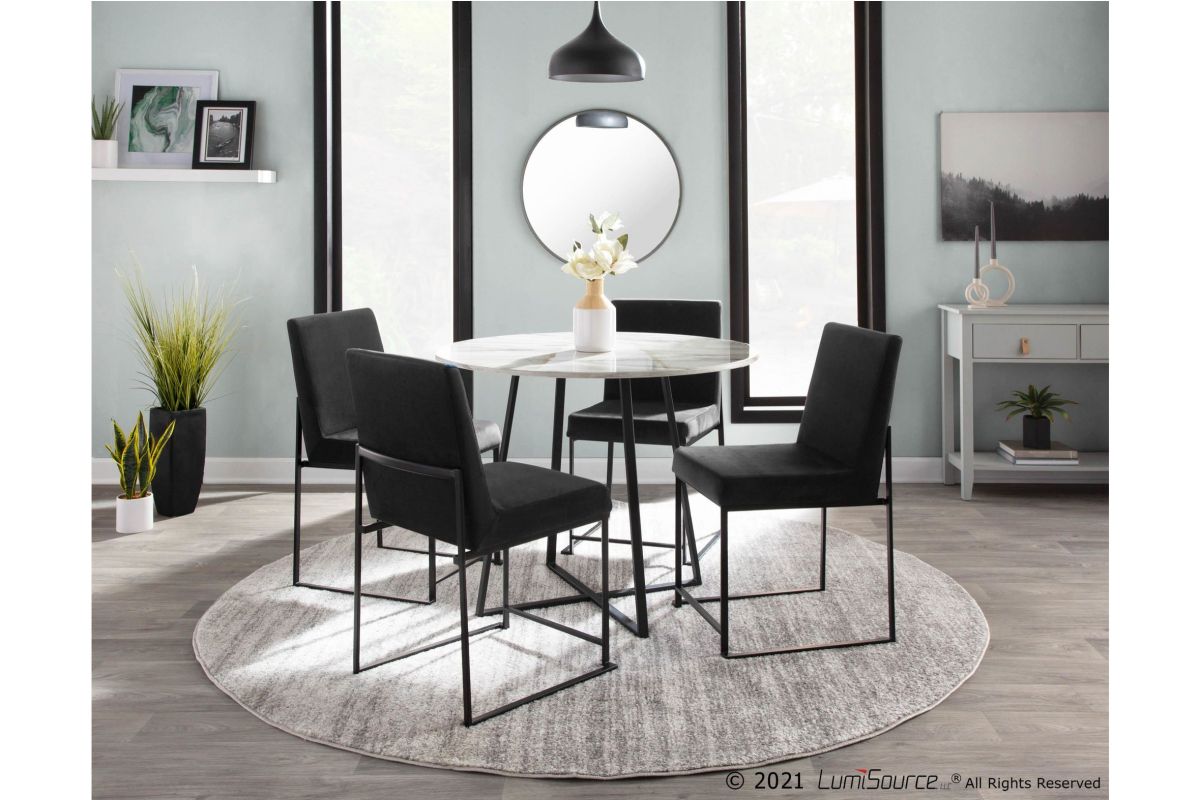 Modern elegance at its finest, the Fuji High Back Dining Chair features an extra-wide (and extra comfortable) upholstered seat, high padded backrest, and stylish metal frame. The perfect dining chair, the Fuji is multi-functional and can be used as extra seating in a sitting room or as a stylish office chair. Available in stainless steel or gold metal frame and a variety of sleek upholstery colors. Pair with the Fuji Dinette Table for a complete look.