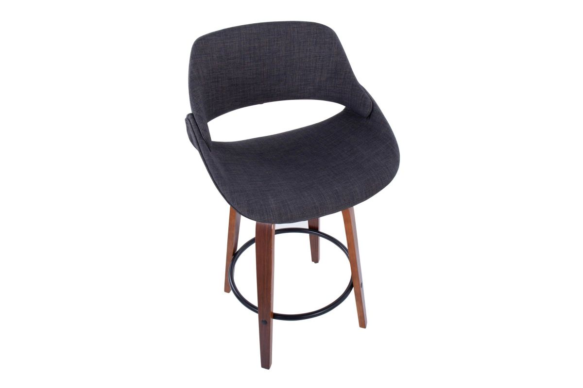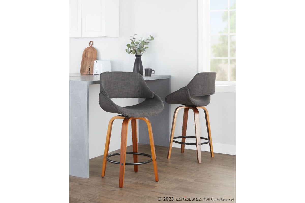 The wide and welcoming seat of the LumiSource Fabrico Counter Stool beckons one to sit and relax. A curved back and contoured upholstered seat is accented by flared walnut wood swivel legs that add to the stylish yet comfortable design. Available in a variety of upholstery colors, choose the one that suits your space best.
