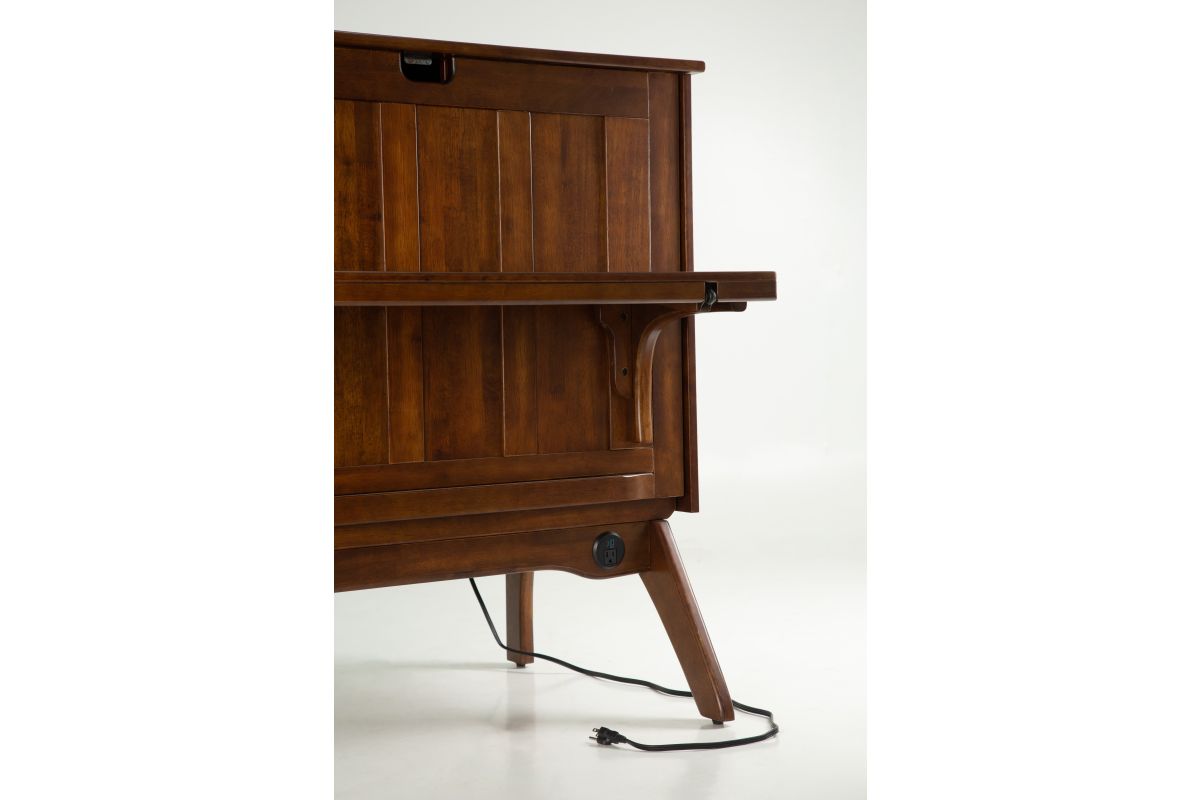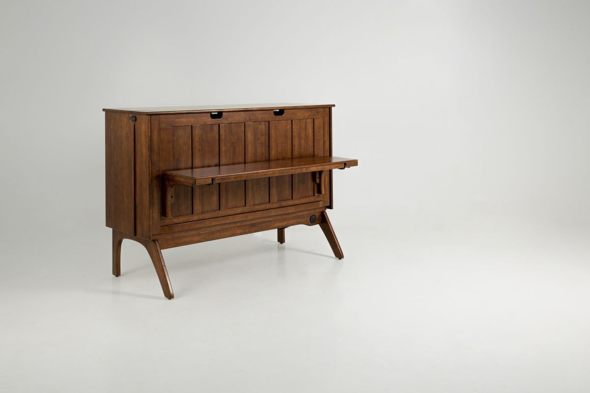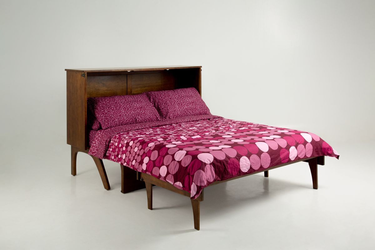 The Olympia Desk Bed is a stylish, space-saving solution for rooms that need to do double duty. By day, it offers a practical work surface for your work at home needs - by night, it folds out into a grandly comfortable queen size bed. Crafted in solid hardwood with mid-century design cues, it blends beauty with utility.