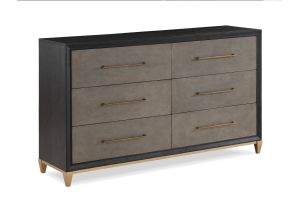 The Payson Dresser is a dresser constructed from wood and metal that offers both aesthetic appeal and practical storage solutions. This piece is part of the stylish and functional Payson Collection, which includes furniture known for its rich brown finish.