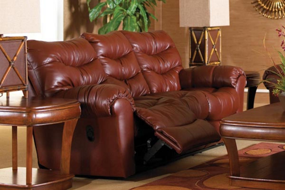 Get quality reclining leather for less. Sofa features two reclining contoured seats and soft, supple leather everywhere you touch.