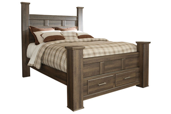 The beauty of vintage casual comes to life with the Jeri Queen Bed. The replicated oak finished coupled with the warm pewter hardware makes this bed the perfect way to create that cottage getaway within the comfort of your home. This bed features thick poster bed posts and footboard storage.