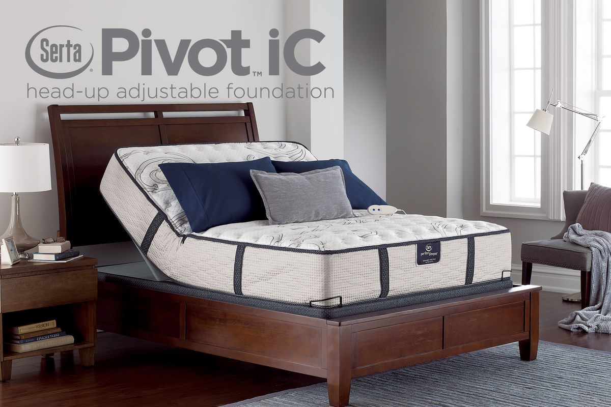 The Serta Pivot™ adjustable foundation allows you to adjust the head of the mattress to find the perfect level of comfort whether you are reading, watching television or just lounging in bed. Plus, adjusting the head of the mattress can help reduce snoring! The Pivot comes with a convenient wired remote and is finished with stylish fabric that beautifully complements your Perfect Sleeper mattress.