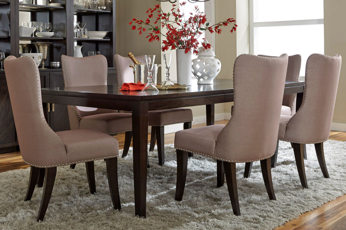 The Vera Upholstered Khaki Side Chair is perfect for those looking to add a sophisticated touch to their dining area. This dining chair is upholstered in a soft, breathable fabric adorned with nailhead trim and also comes in red or charcoal to match your specific tastes.