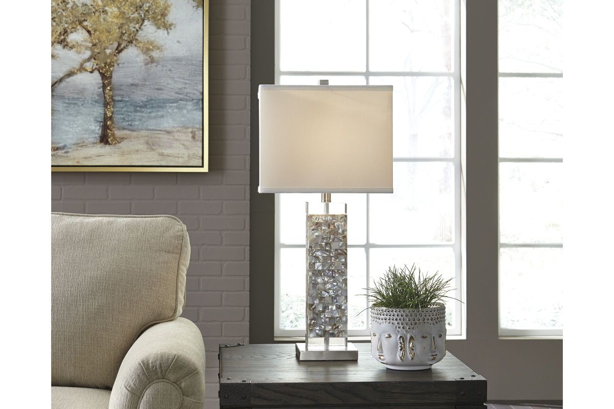 Sorry, the Tahira Shell Table Lamp by Ashley is no longer available. We've left this page up for reference only. Check out the great alternatives on this page or call 248-481-2208 or Chat with a Gardner White Sales Specialist about similar products.